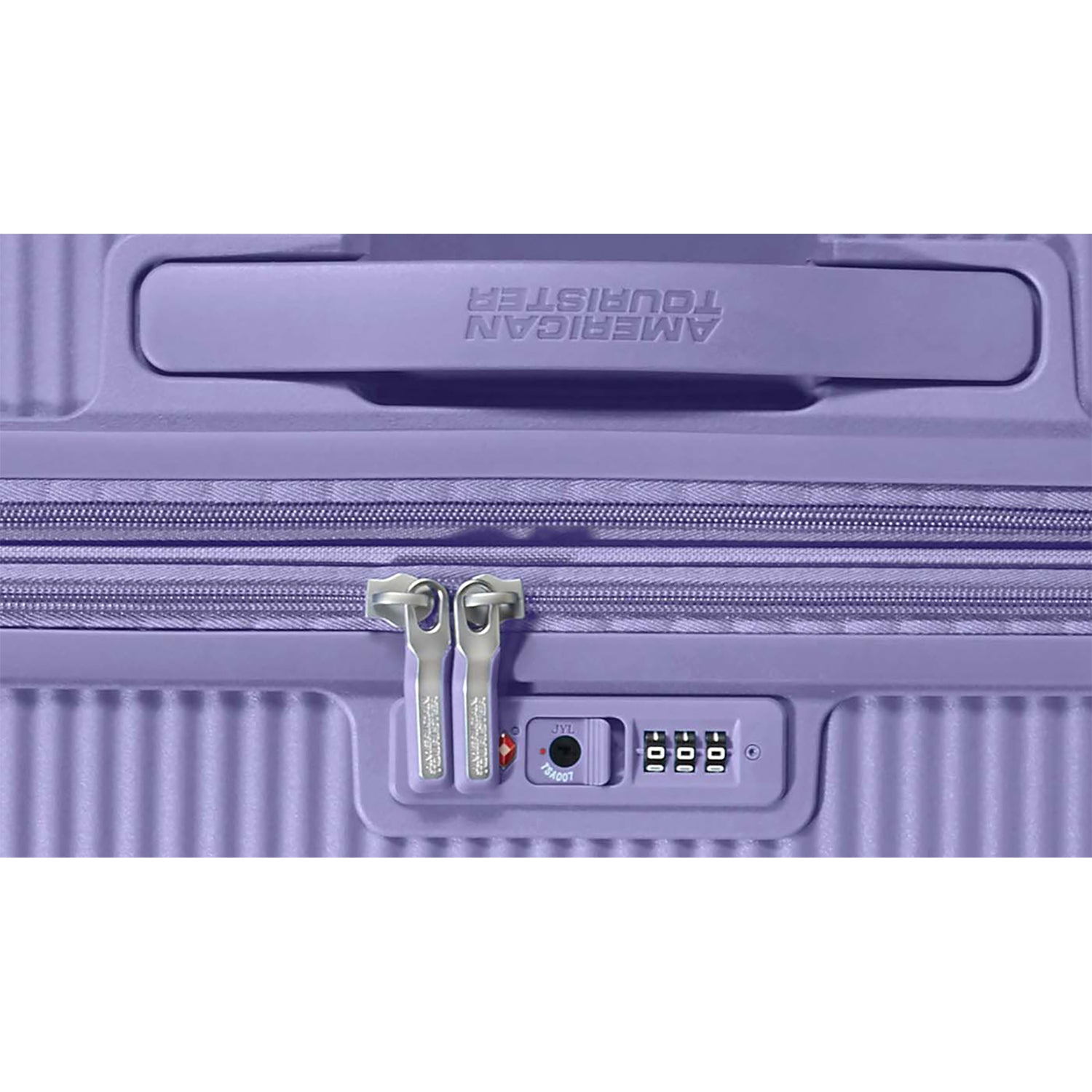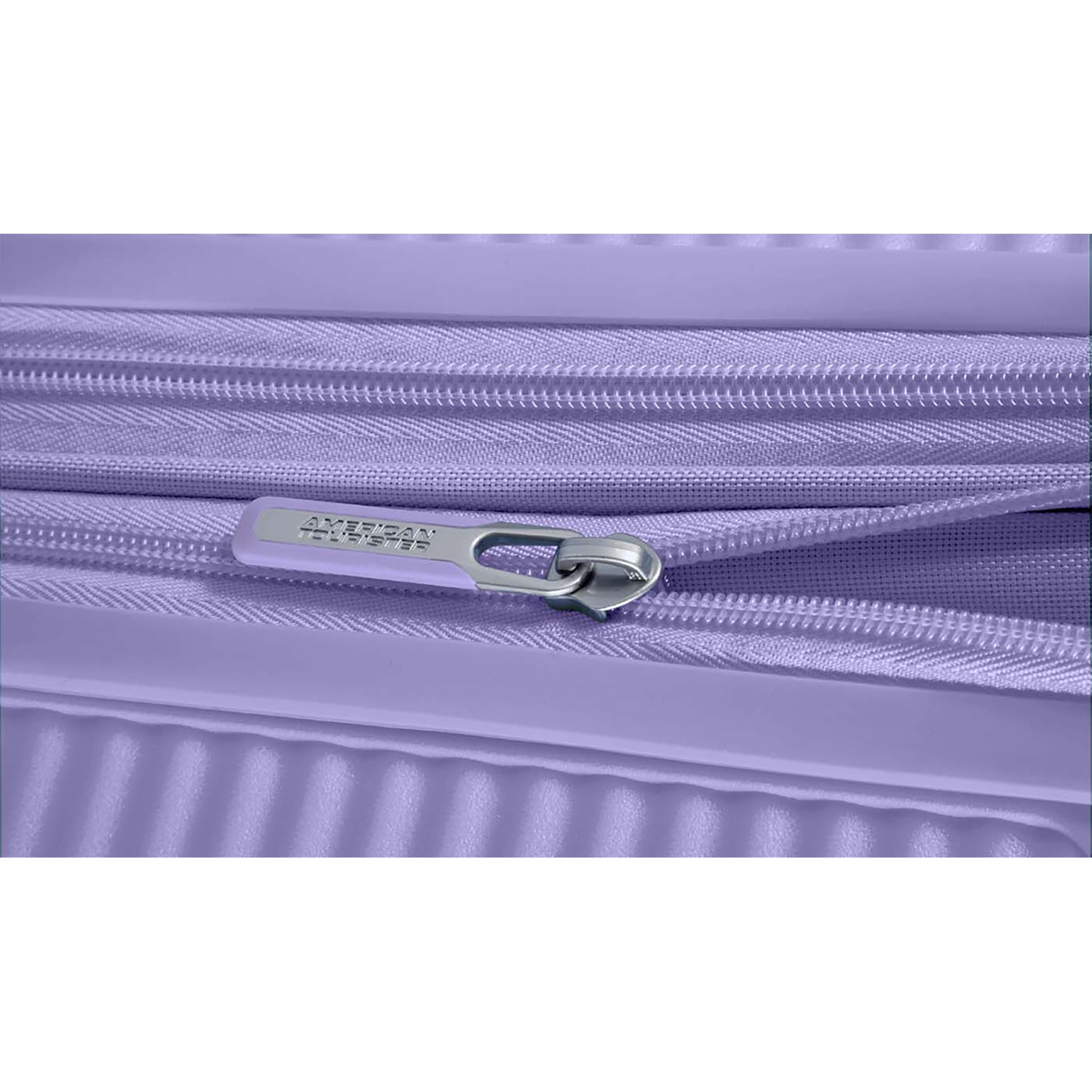 Kabinové zavazadlo v levandulové barvě s dvojitými kolečky pro snadnou a plynulou jízdu.