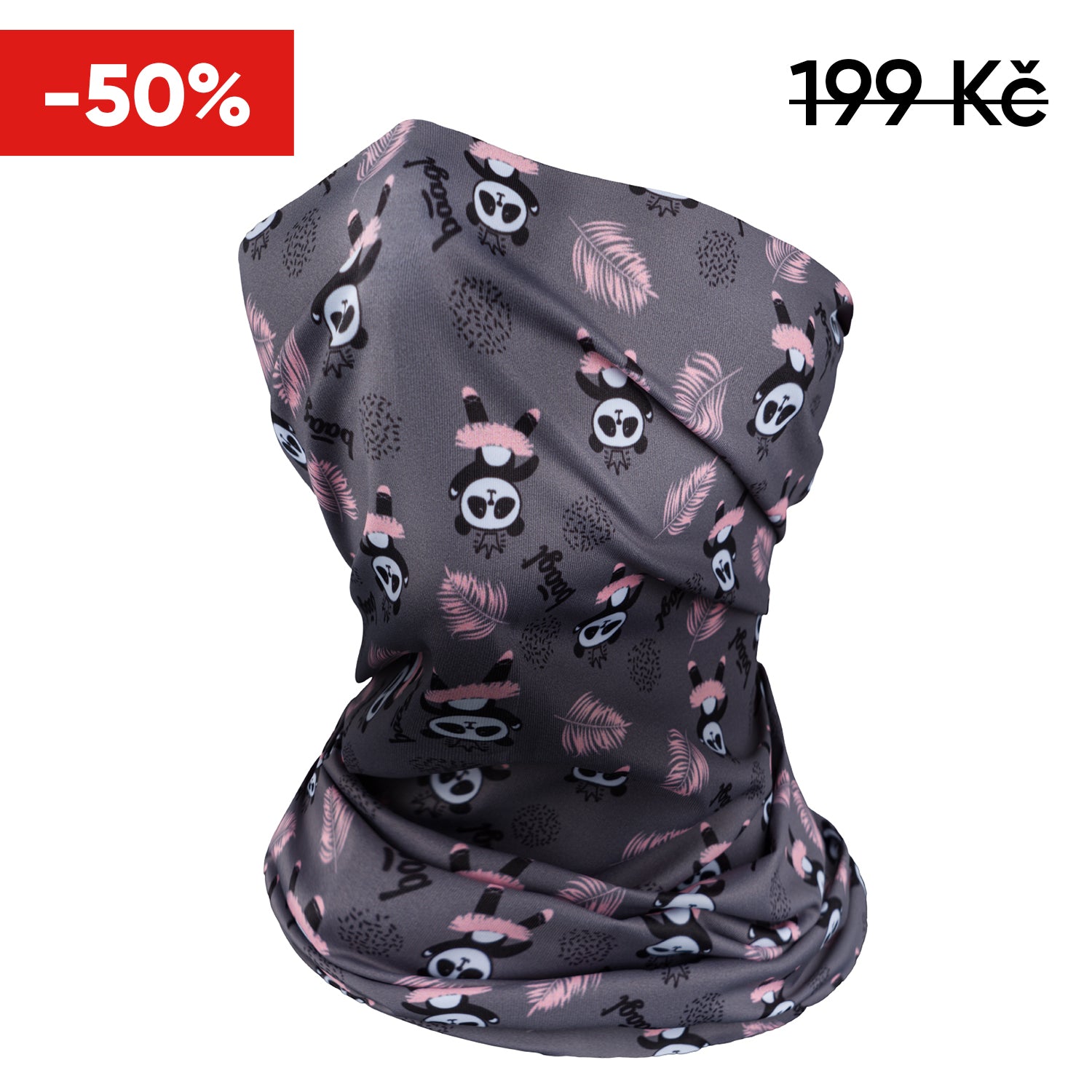 Holčičí bandana Panda v šedivé barvě s potiskem roztomilých zvířátek.