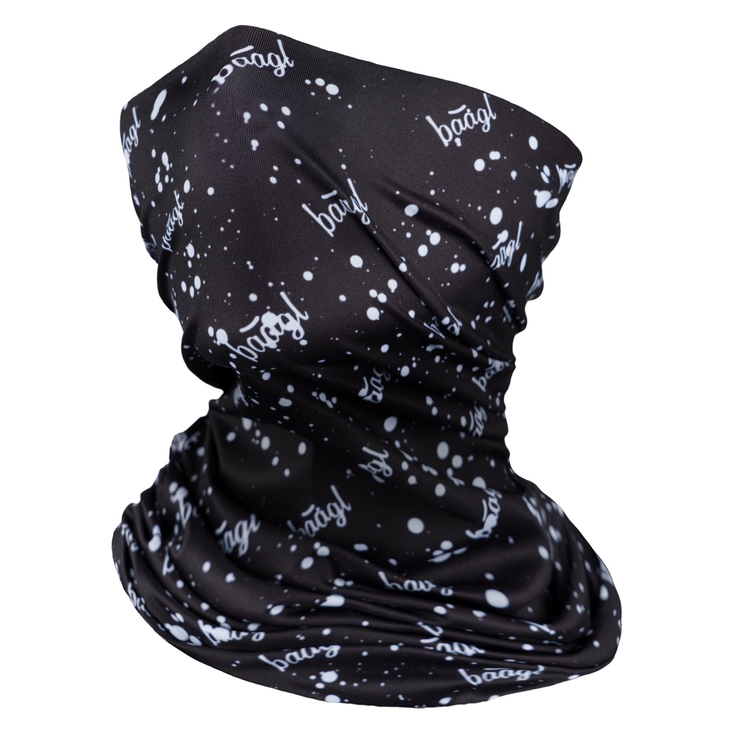 Černá bandana s potiskem motivu Vesmíru a loga Baagl.