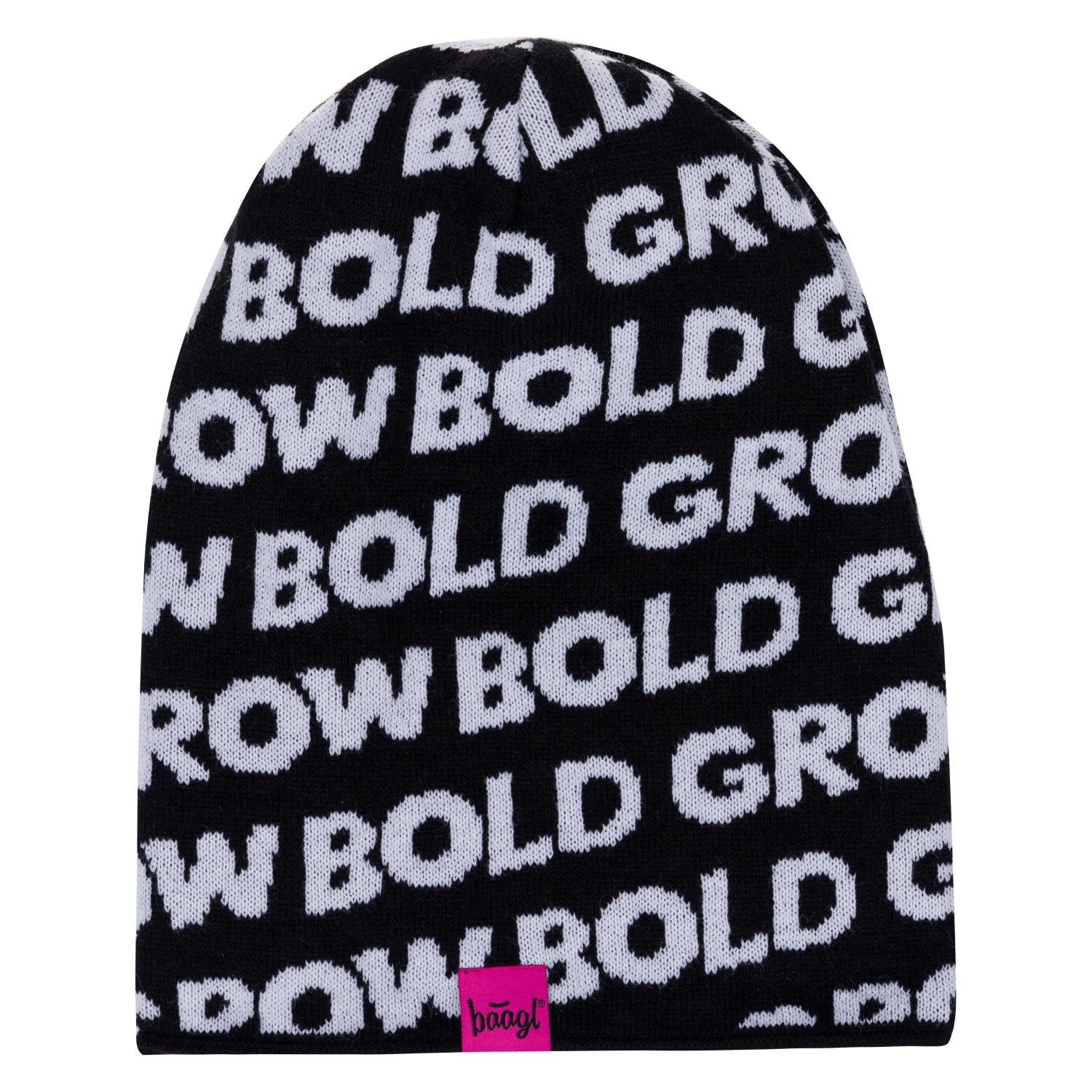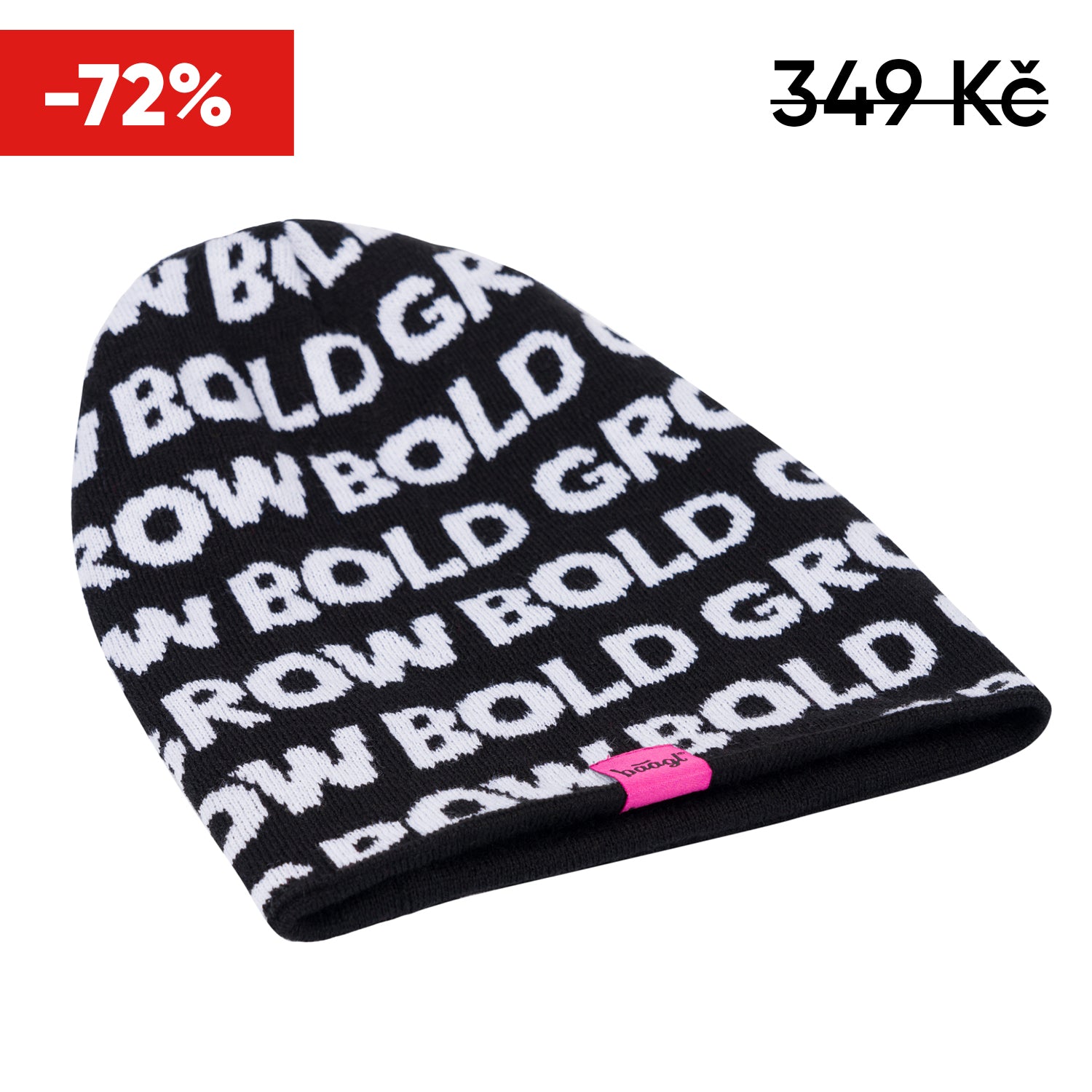 • Černá beanie čepice s bílými nápisy GROW BOLD.