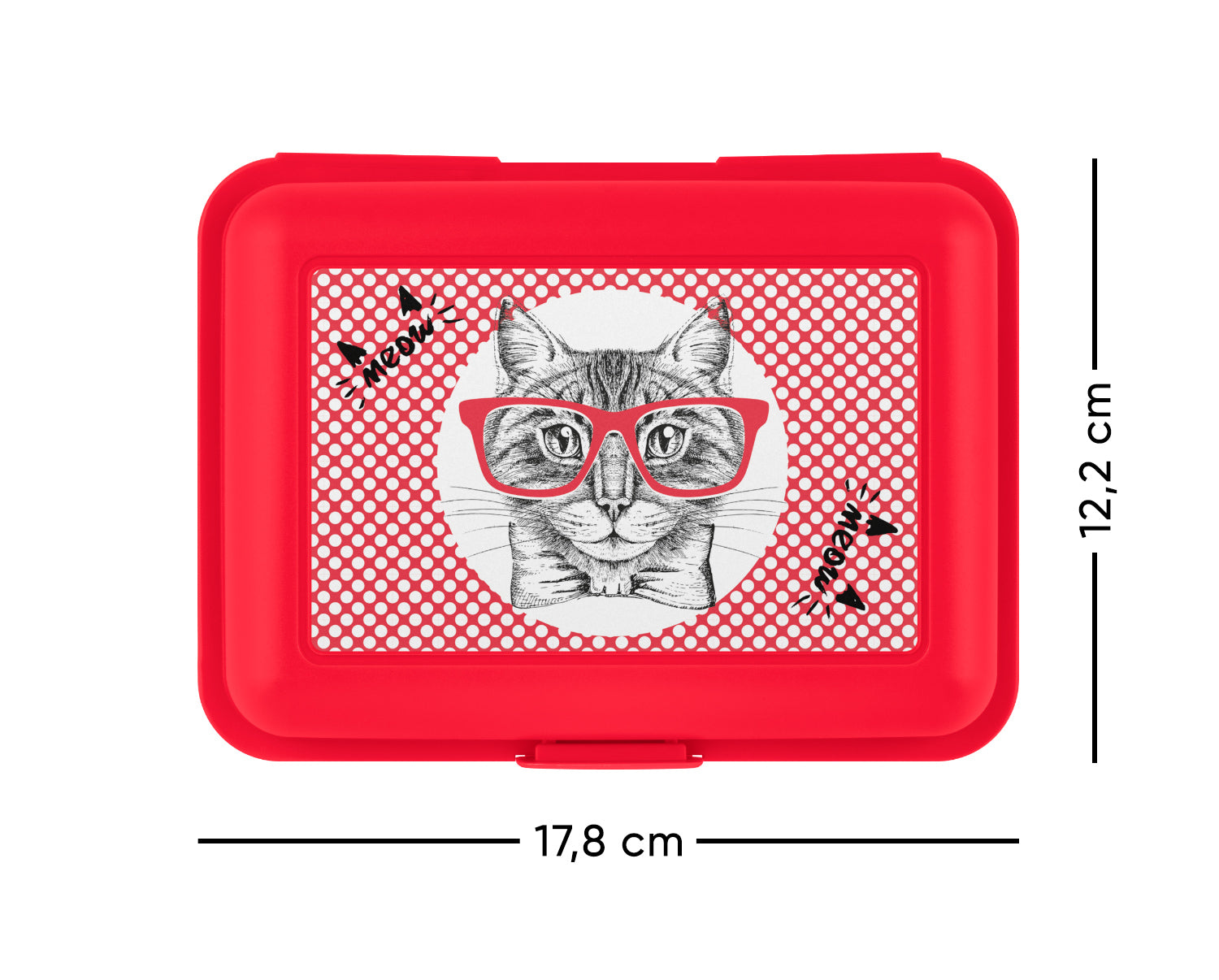 • Plastový box na svačinu s motivem kočky, uzavírání na jeden zámek a dělicí přepážkou.