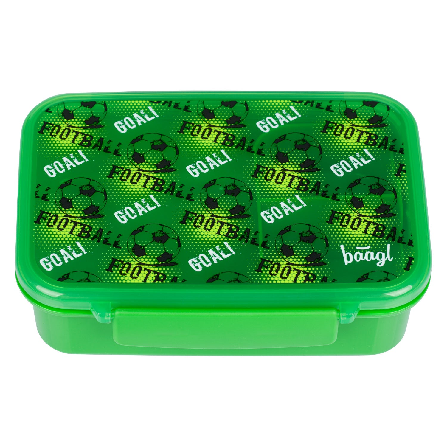 Praktický svačinový box s fotbalovým motivem a vyjímatelnými přihrádkami pro snadné oddělení jednotlivých jídel.