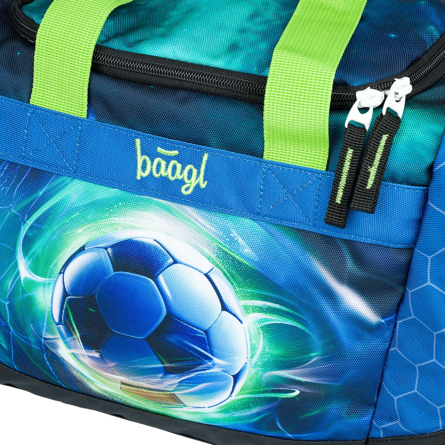 Dětská sportovní taška s motivem fotbalového míče. Prostorná hlavní komora s širokým víkem a boční prodloužená kapsa na obuv zajistí dostatek místa pro všechny pomůcky každého malého sportovce. Dno je vyrobeno z pevného materiálu, který odpuzuje vodu, díky čemuž zůstává obsah tašky vždy v suchu.