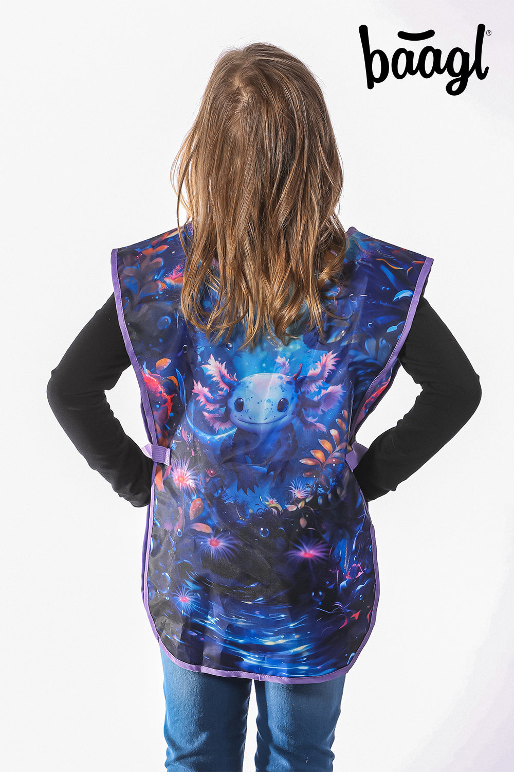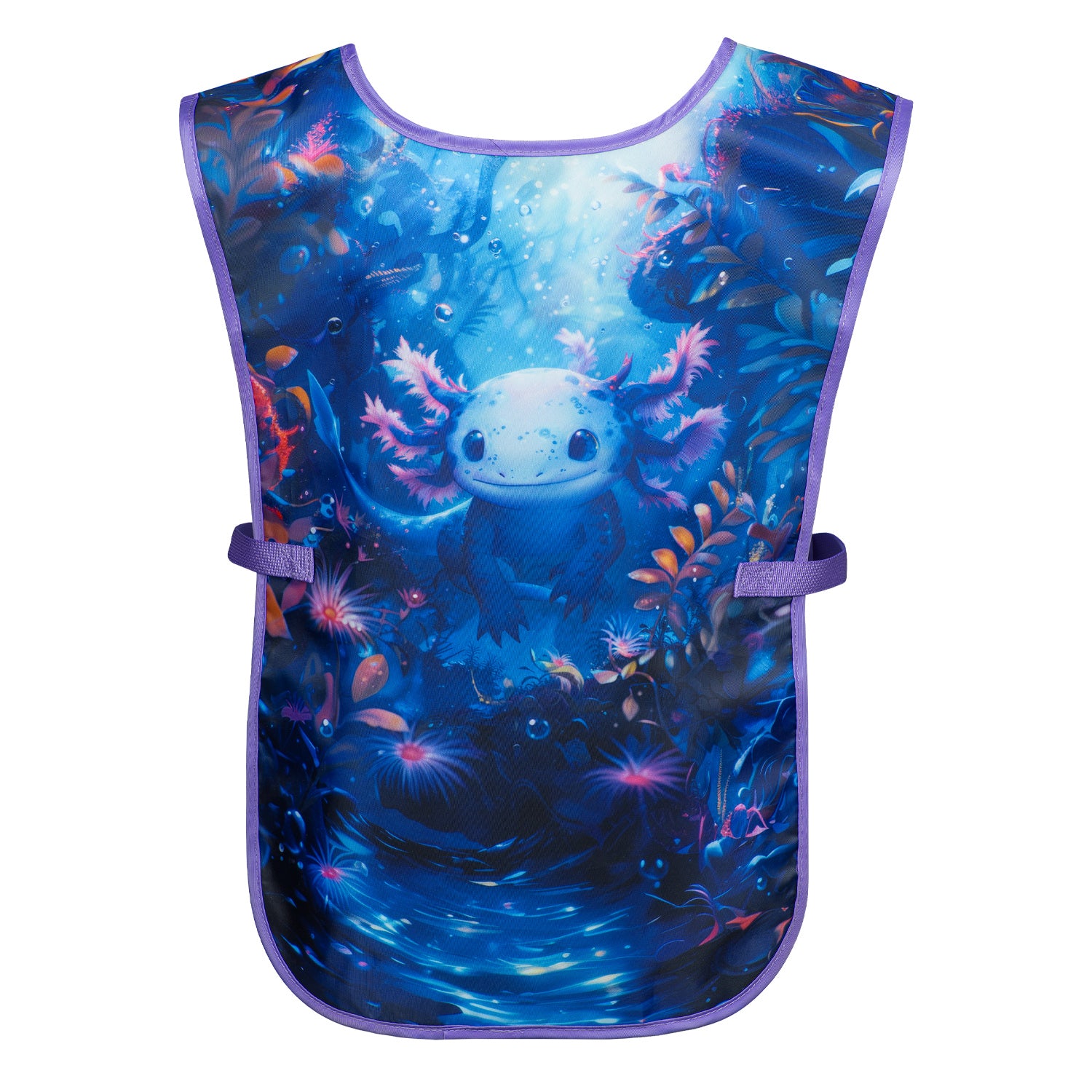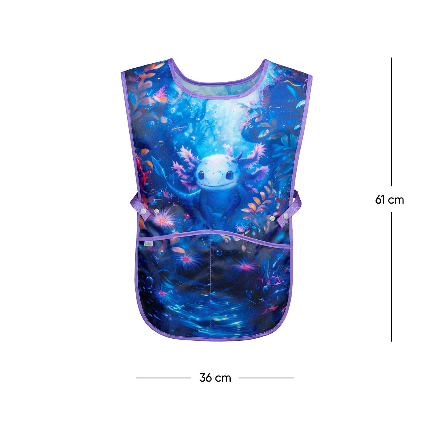 Dětská zástěra na výtvarnou výchovu s mysteriózním motivem axolotla poskytuje nejen inspiraci k tvorbě uměleckých děl, ale i ochranu před ušpiněním během jejich vzniku.