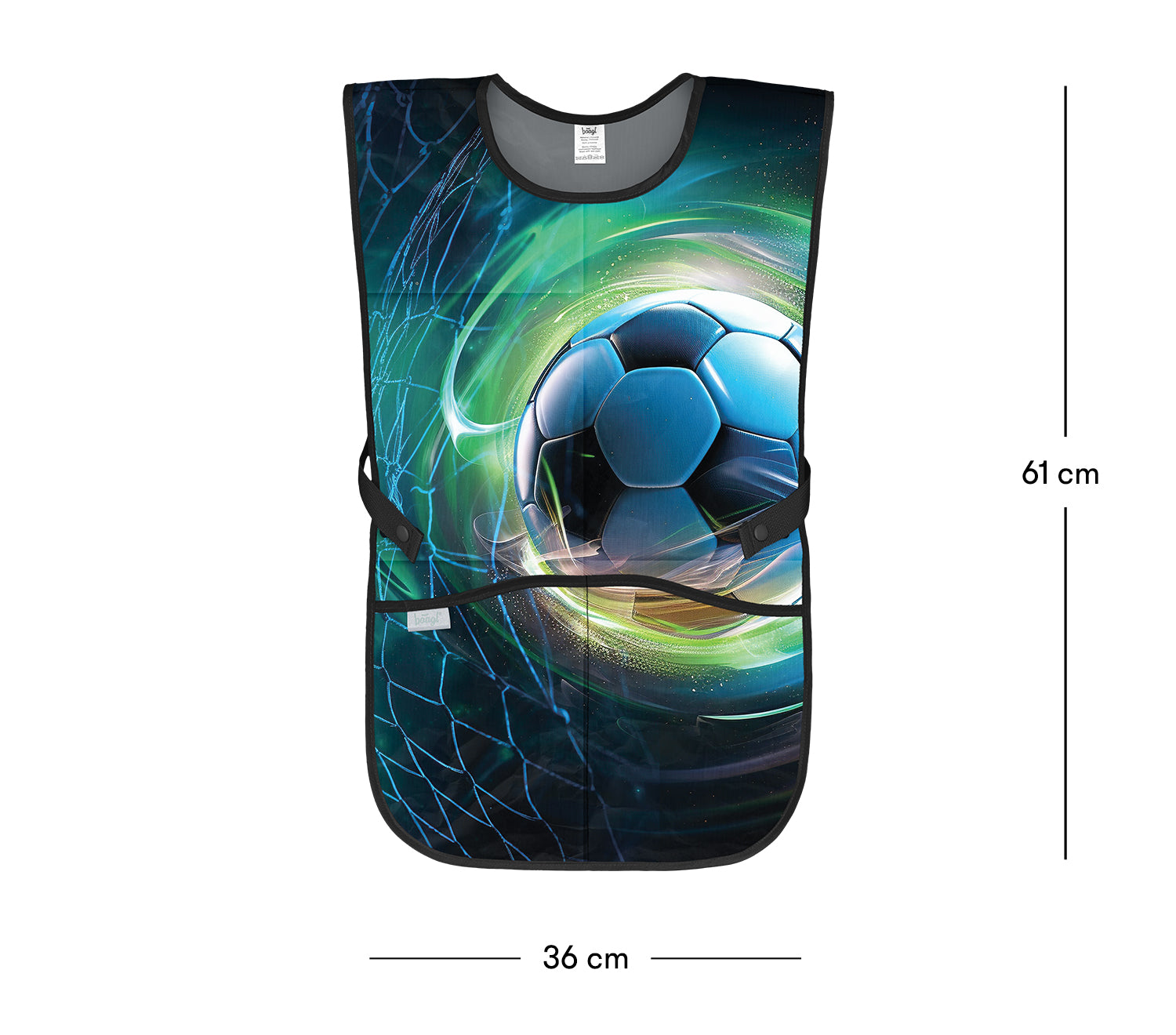 Chraňte oblečení svého malého školáka praktickou zástěrou na výtvarnou výchovu. Zástěra s motivem fotbalového míče má nastavitelný popruh, díky němuž ji snadno přizpůsobíte aktuální výšce dítěte, a je vyrobena z kvalitního omyvatelného materiálu.