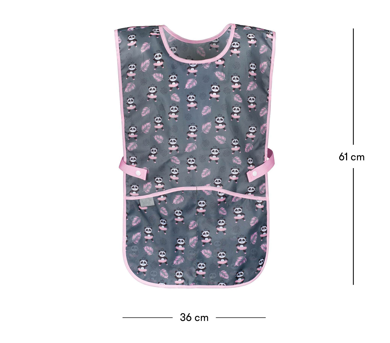 Zástěrka s roztomilou pandou na bříšku potěží všechny malé výtvarnice. Má praktické zapínání na patentky. Už žádné vázání a hurá na malování.