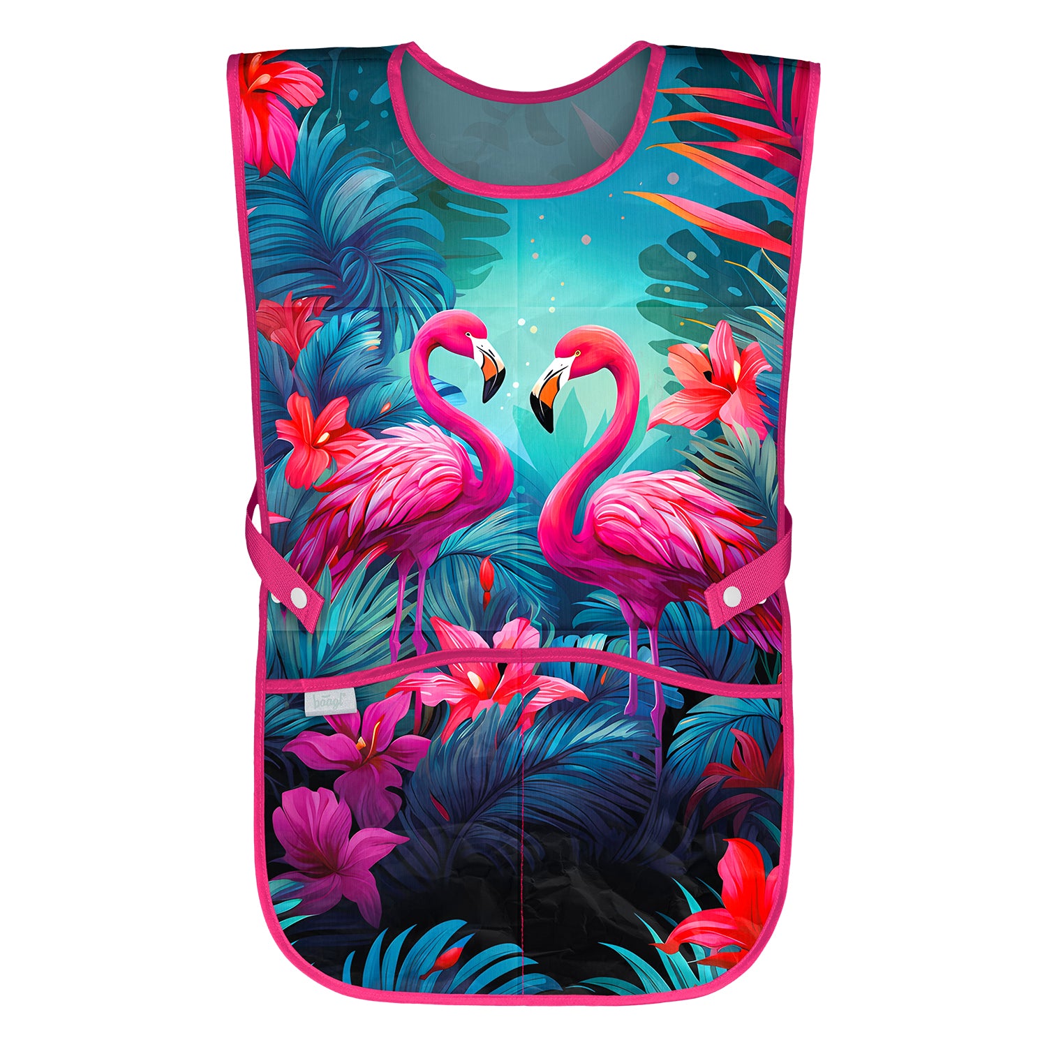 Chraňte oblečení svého malého školáka praktickou zástěrou na výtvarnou výchovu. Zástěra s motivem plameňáků má nastavitelný popruh, díky němuž ji snadno přizpůsobíte aktuální výšce dítěte, a je vyrobena z kvalitního omyvatelného materiálu.