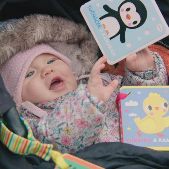 Ultralehká knížka s měkkými filcovými stránkami plná zvířátek a barev představí dětem tučňáčka a jeho polární kamarády, haptické prvky pak přispívají ke komplexnímu smyslovému rozvoji těch nejmenších. Praktickým poutkem ji hravě připevníte třeba ke kočárku!