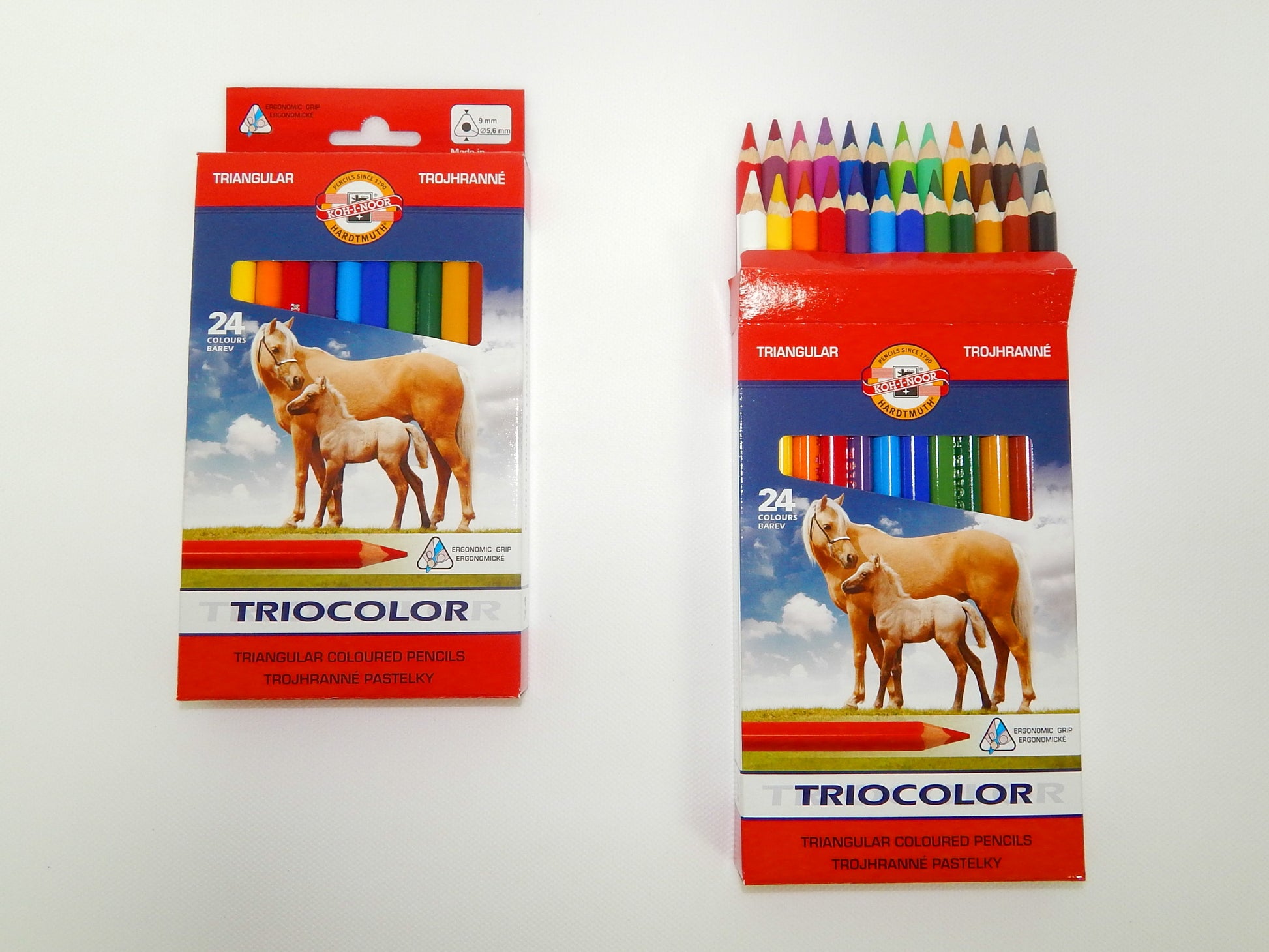 Ergonomický trojhranný tvar umožňuje optimální držení a vedení tužky. Balené po 24 ks mix barev do kartonové krabičky. Jsou vhodné pro školu a výtvarné kreslení. Průměr 9 mm.