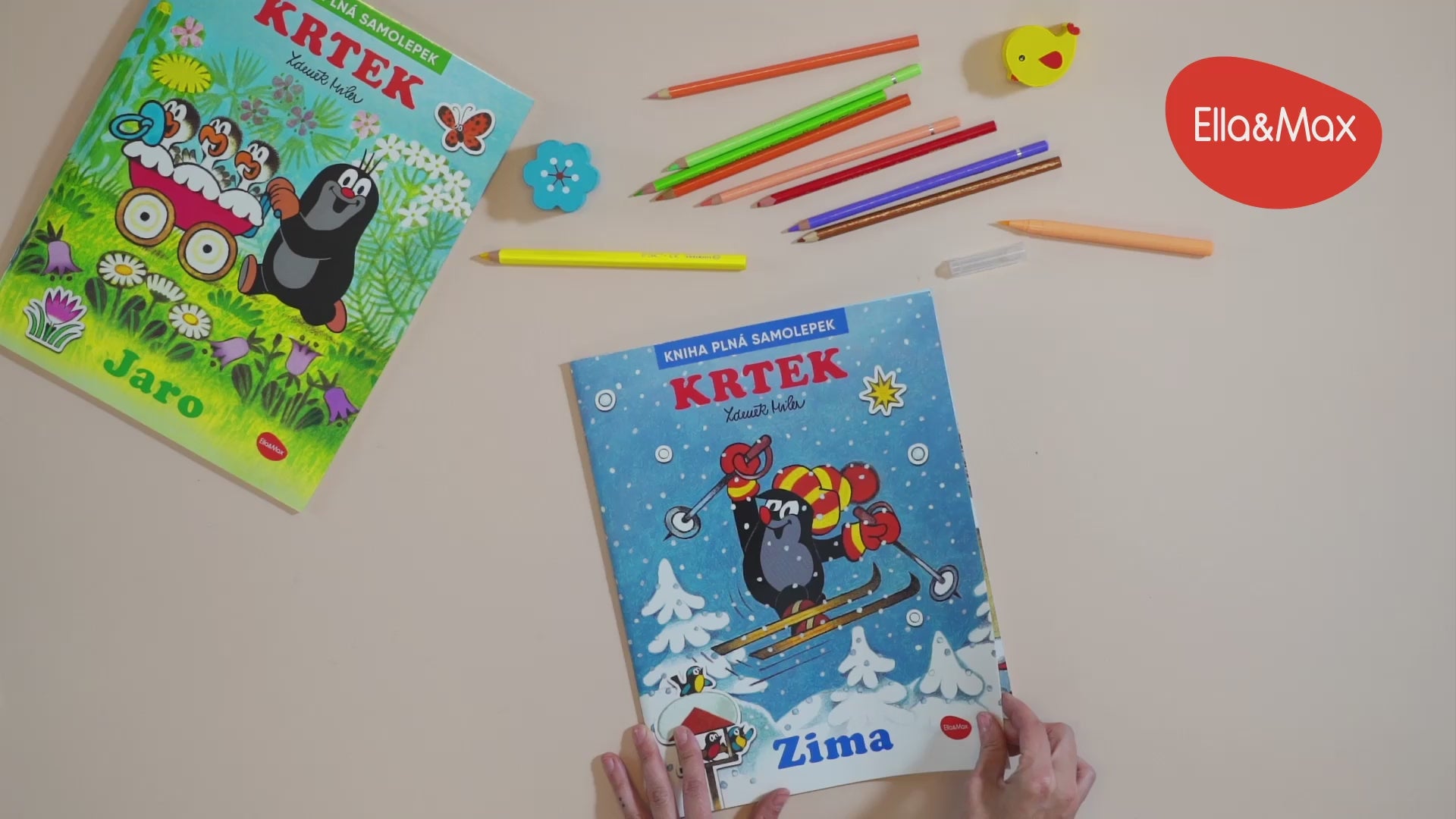 Kdo by neznal krtka – nejroztomilejšího kresleného pohádkového hrdinu na světě? Vydejte se spolu s ním objevovat kouzlo ročních období na krásných obrázcích geniálního výtvarníka Zdeňka Milera! Dvoustránkové scenerie mohou děti dolepovat spoustou roztomilých samolepek, ať už podle zadání, anebo podle vlastní fantazie. V knížce se kromě toho dozvědí mnoho nového a zajímavého o zimě a za pomoci samolepek si také mohou vyzdobit vlastní obrázek, pokojíček nebo vyrobit pexeso!