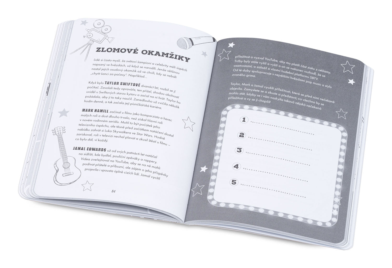 Pro všechny, kdo potřebují na začátku své cesty ke hvězdám malinko popostrčit (což ostatně potřebuje každý), vytvořil úspěšný sportovec a autor světových bestsellerů Matthew Syed tenhle atraktivní zápisník. Takže neváhejte, chopte se tužky, a ať už máte v malíčku Mathewovu úžasnou knihu Máš na to!, anebo jste se rozhodli začít rovnou praktickým nácvikem různých technik, jež vám tu autor představí a které vás dovedou k úspěchu, vydejte se pro pořádnou porci sebedůvěry! Protože když to máte dobře srovnané v hlavě, dokážete (skoro) všechno, co si usmyslíte – počínaje písemkou z matiky přes žákovské přebory v plavání až po kariéru kosmonauta nebo osadníka Marsu. Kdo ví, třeba jednou změníte svět, nebudete-li se bát využít naplno svůj potenciál...