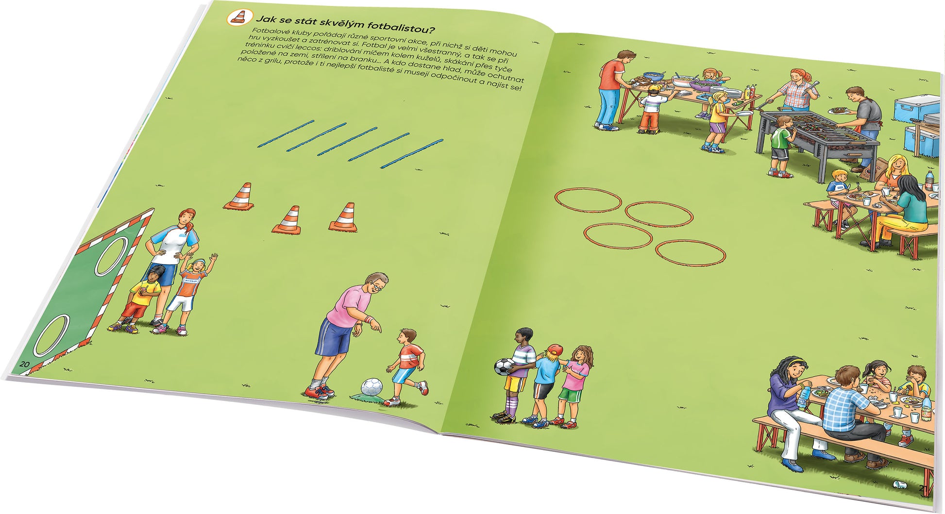 Jak? Proč? Co? V tomhle naučném samolepkovém sešitě pro děti od 4 do 7 let najdete odpovědi snad na všechny zvídavé otázky týkající se populární kolektivní hry – fotbalu. Na každé dvoustraně se dočtete spoustu zajímavostí, a navíc máte k dispozici přes 300 samolepek k dotváření scén a plnění zábavných úkolů! Ty zapeklitější vám dají možná trošku zabrat, ale žádný strach – na konci knížky nechybí malá nápověda…
