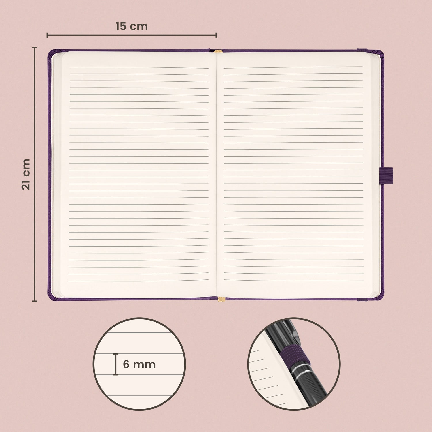 Klasický linkovaný notes ve fialové barvě s klasickým a elegantním povrchem.