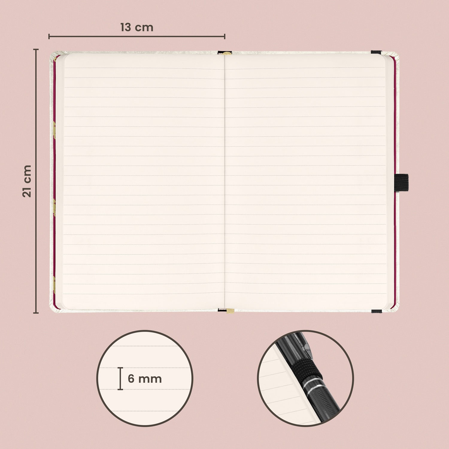 Kvalitní linkovaný notes v pevných deskách s uzavíráním na gumičku, poutkem na tužku a vnitřní kapsou na drobnosti. Uvnitř najdete 172 tečkovaných stran na žlutém papíře pro zapsání všech vašich nápadů. Linkovaný zápisník můžete použít jako deník, psát do něj hluboké myšlenky nebo pracovní poznámky.