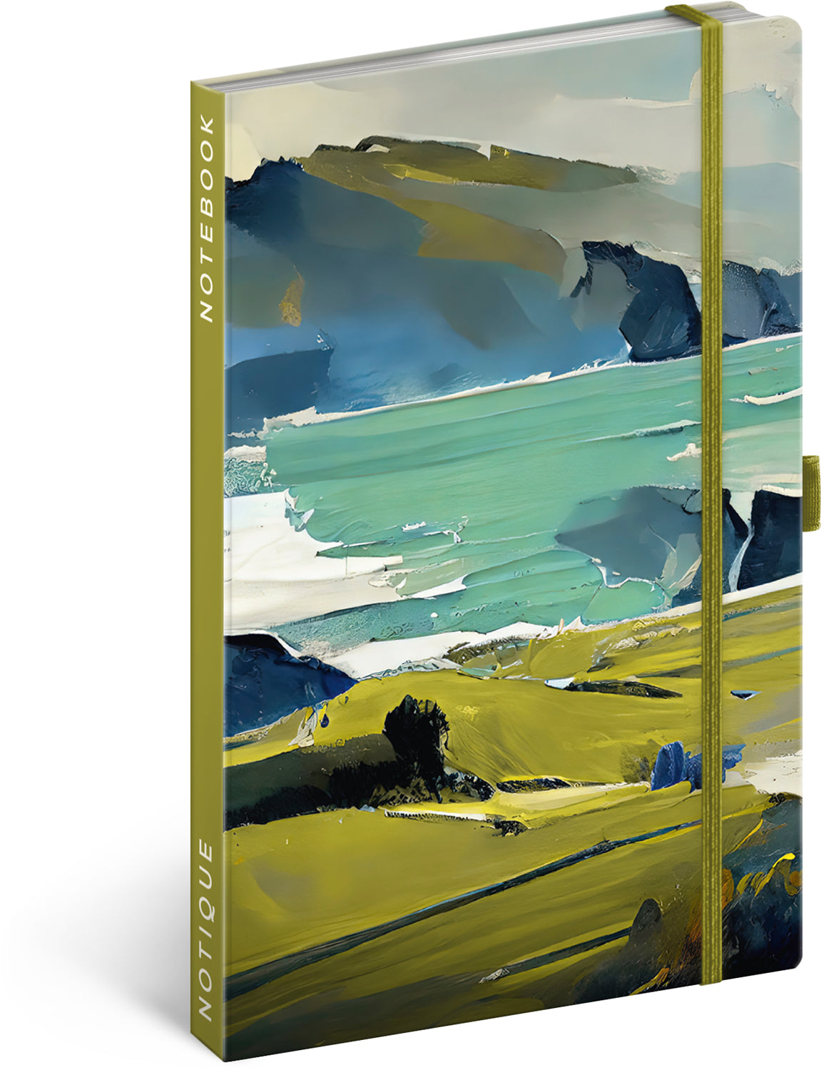 Linkovaný notes v tvrdých deskách se zavíráním na gumičku a s motivem olejomalby.