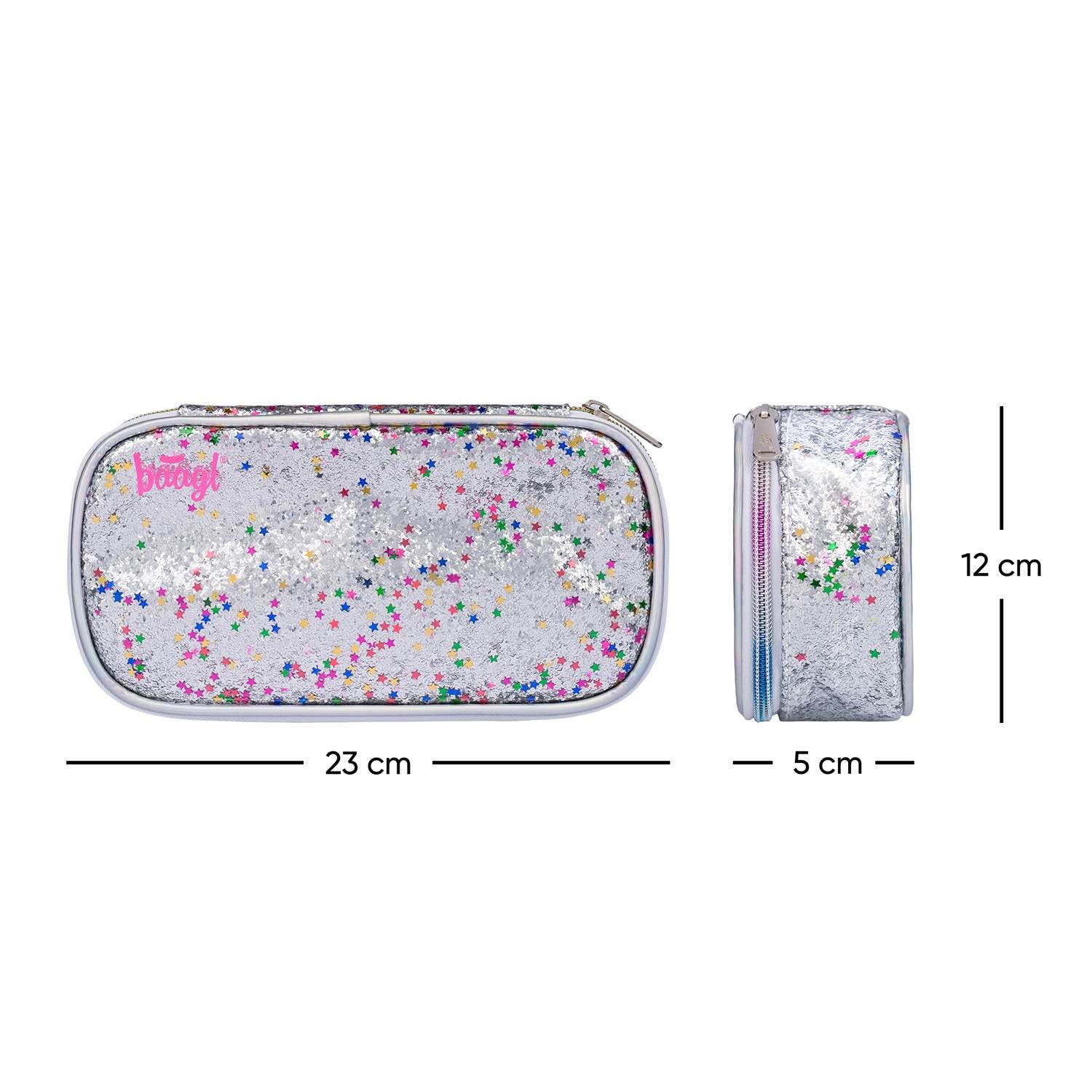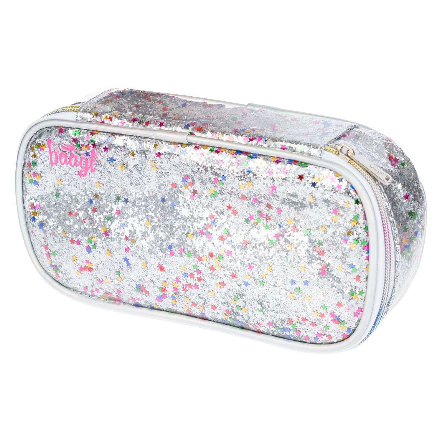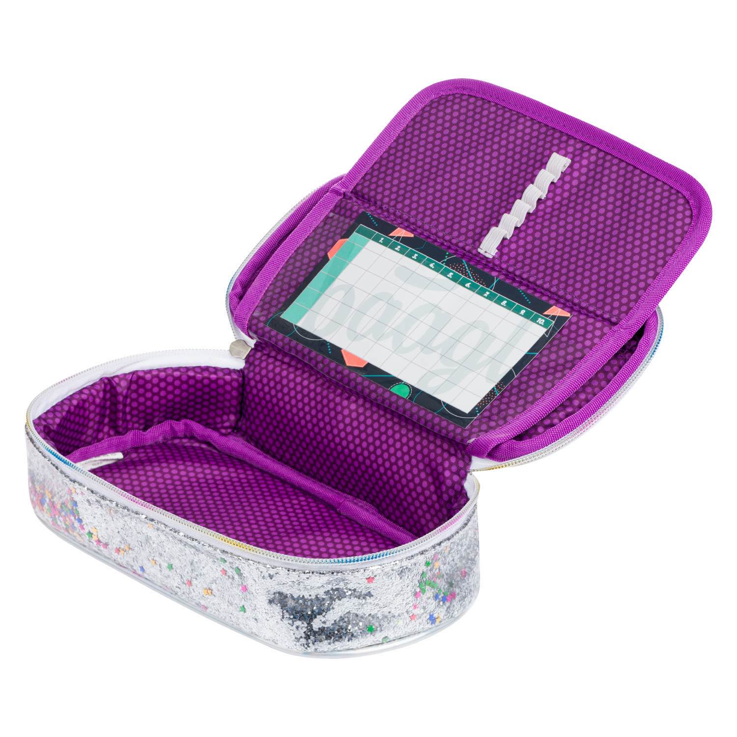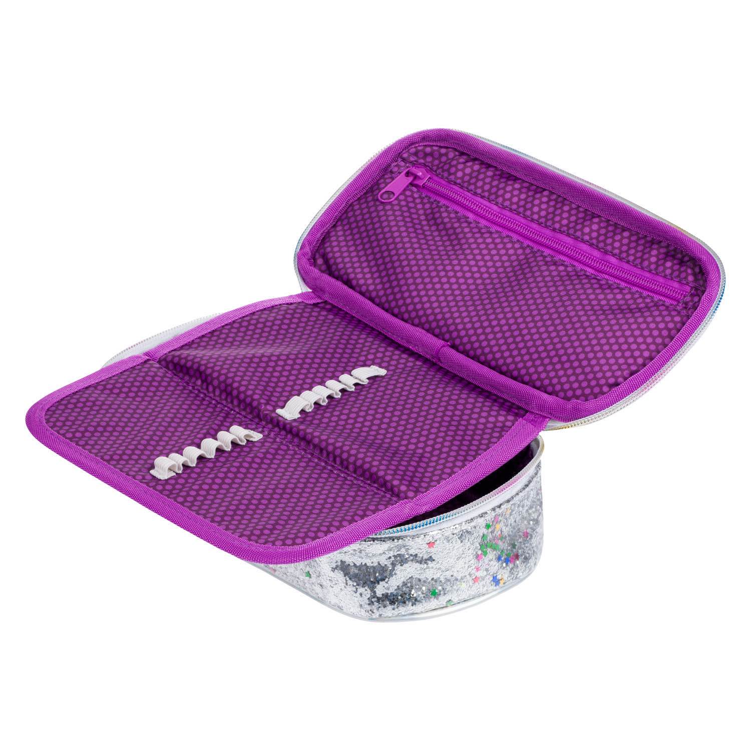 Školní penál etue Fun Duha s flitry a růžovými detaily.