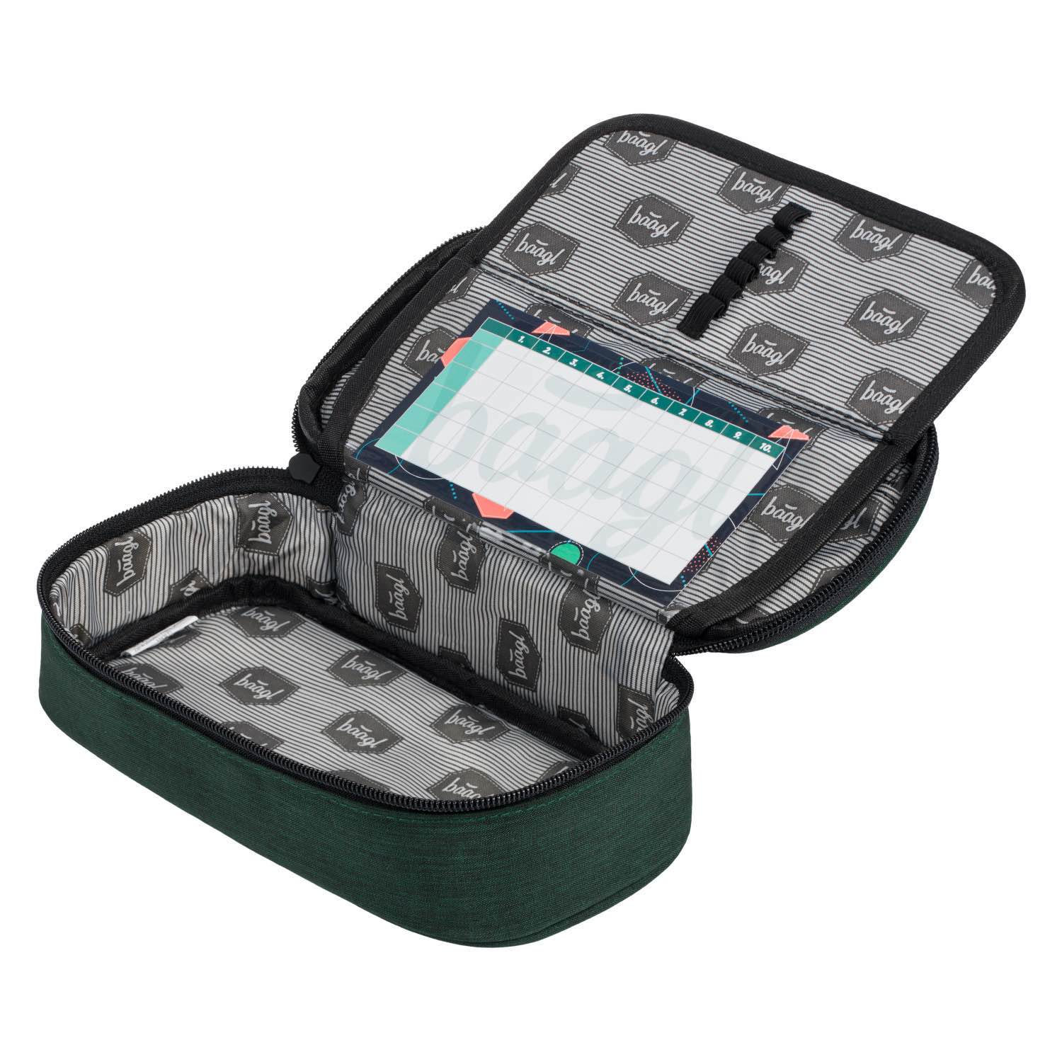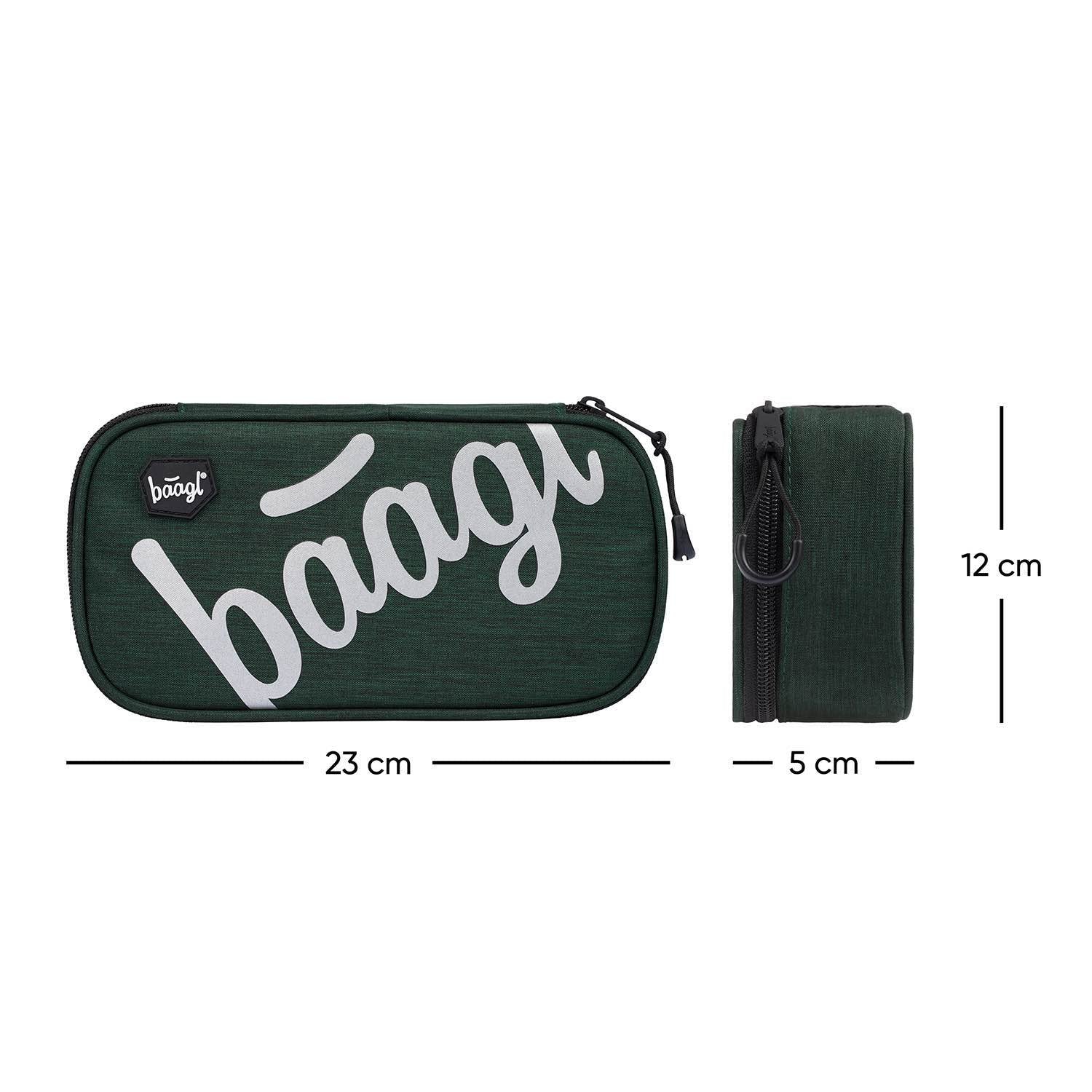 Zelený školní penál s reflexním logem BAAGL na přední straně.