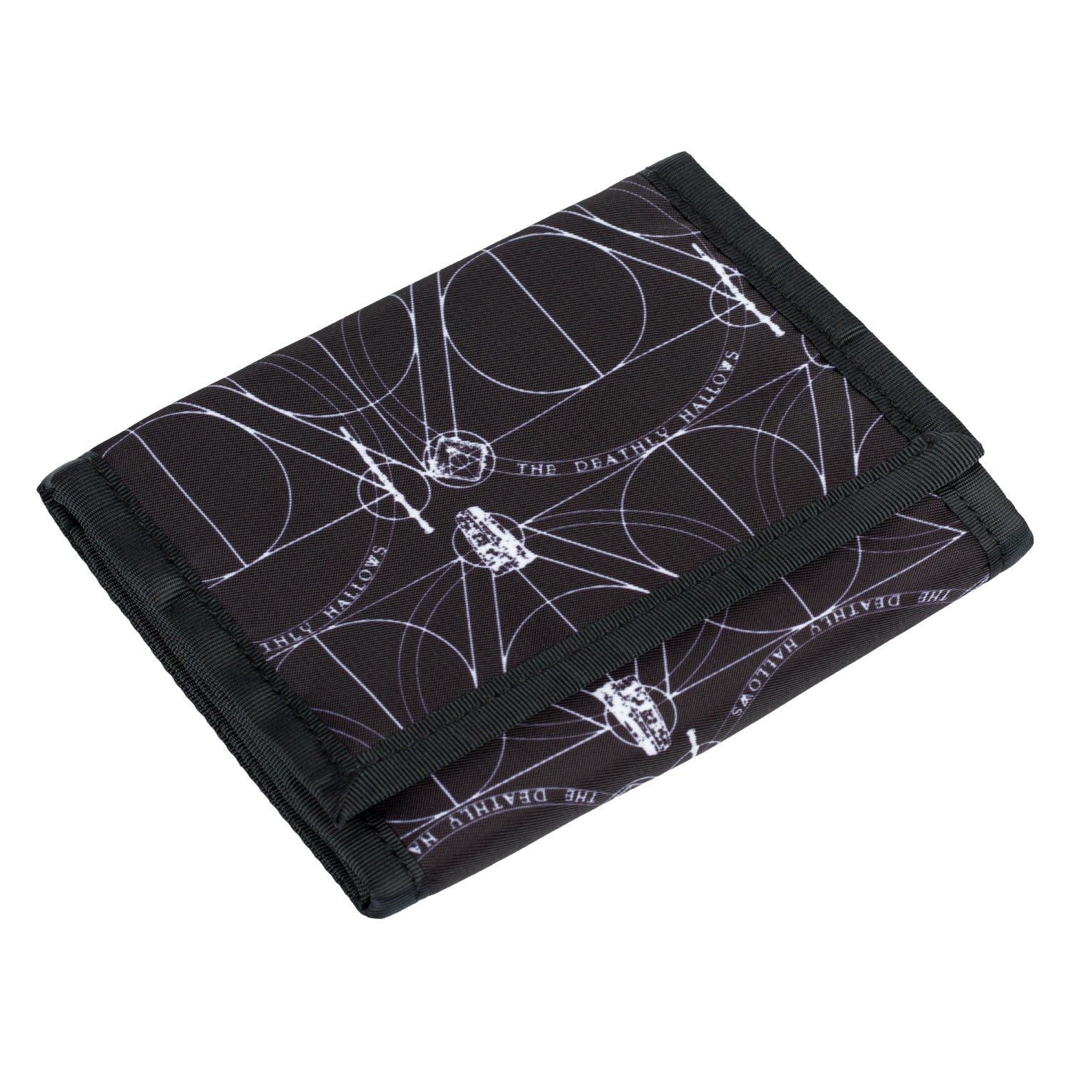 Černá peněženka s motivem relikvie smrti. Díky uzavírání na suchý zip budeš mít vždycky všechny své drobnosti bezpečně po ruce.