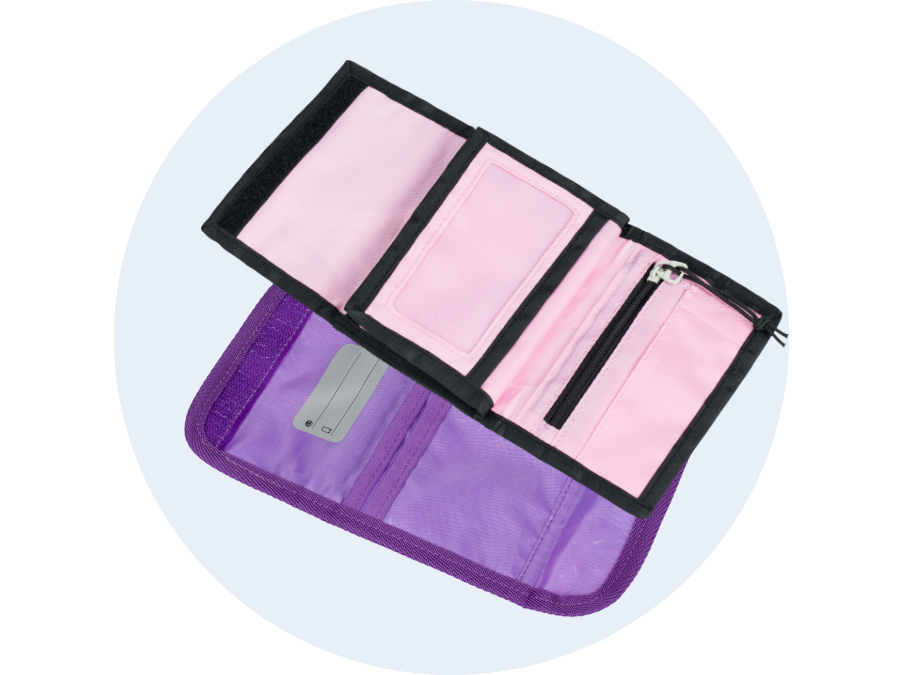 Praktická peněženka s motivem kouzelné víly, která se dá zavěsit na krk. Bezpečně tak uschová drobné, čip na oběd nebo klíček od skříňky.