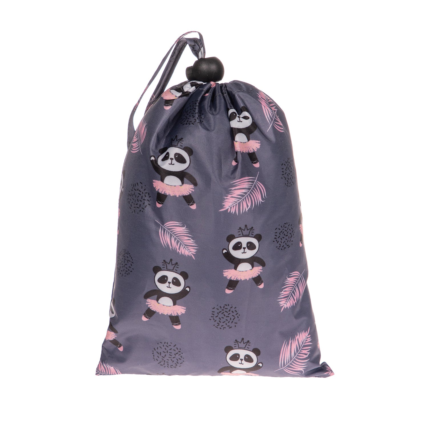 Praktická pláštěnka s motivem pandy a s kšiltovou kapucí. Díky promyšlenému střihu a zapínání na patentky lze pod pláštěnkou pohodlně nosit batoh nebo aktovku.