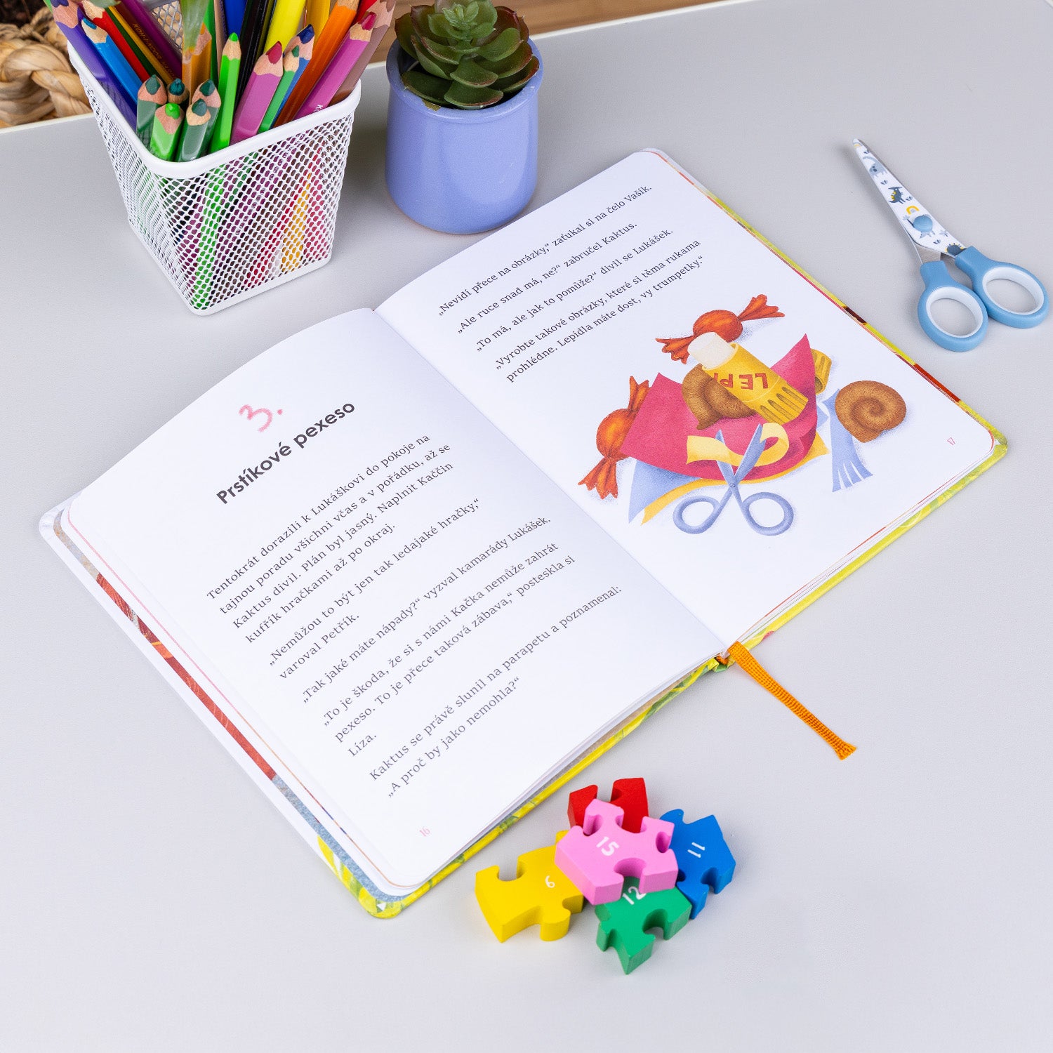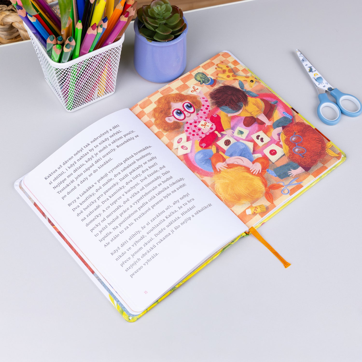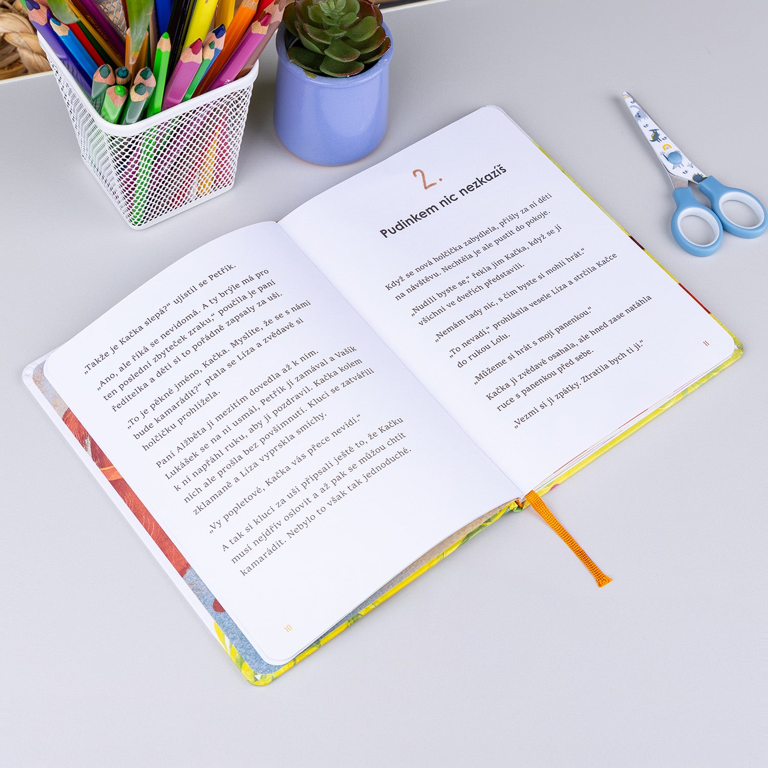 Partu dětí z domova U Sluníčka už možná znáte z knížky Hurá do Kaktusova! Ve volně navazujícím titulu přibude do téhle veselé party nová holčička Kačka, která je nevidomá. Kamarádi pro ni proto vymýšlejí speciální hry a aktivity, aby ji začlenili mezi sebe. Když se pak ve psí škole seznámí s pejsky, kteří pomáhají slabozrakým, rozhodnou se udělat první poslední, aby Kačka, až přijde ten správný čas, jednoho takového psího pomocníka také mohla mít…