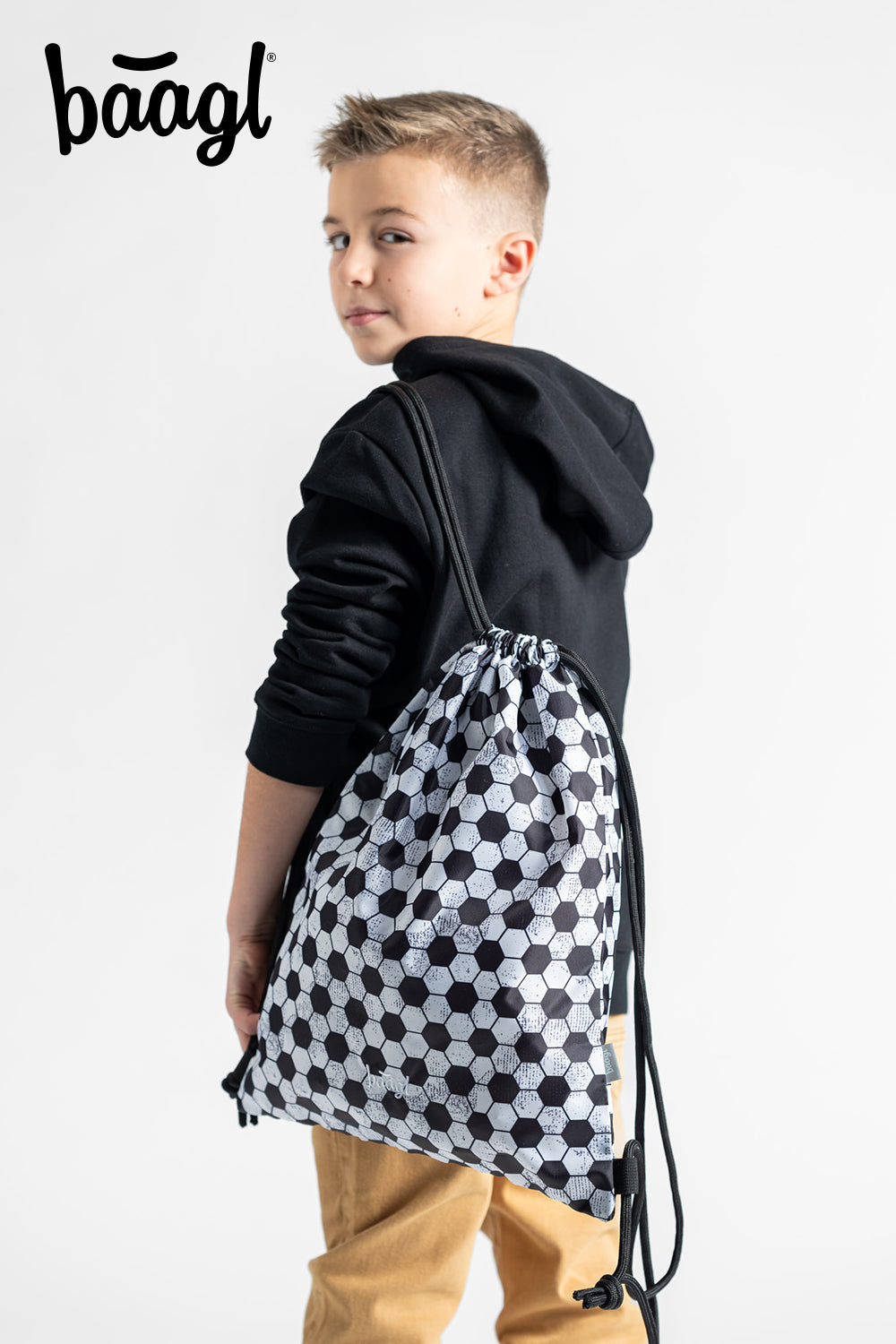 Praktický sáček na obuv či na tělocvik s fotbalovým motivem. Vyrobeno z recyklovaného materiálu.