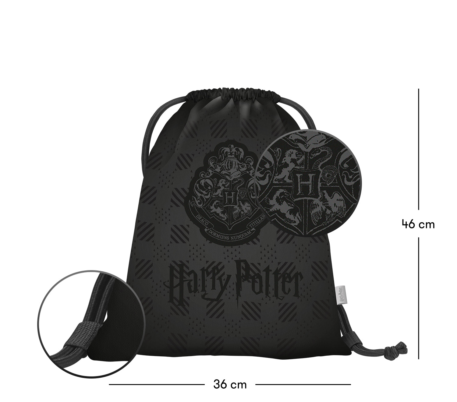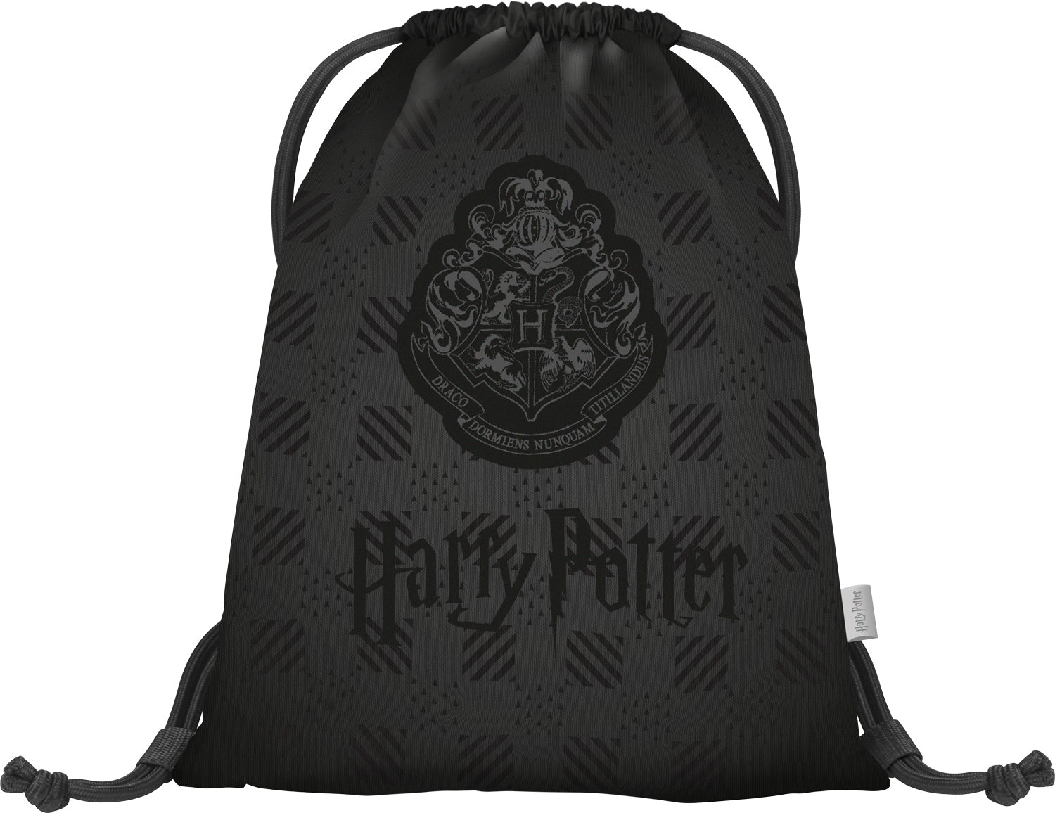 Stylový černý sáček s erbem legendární Školy čar a kouzel v Bradavicích – ideální na přezůvky, sport i volný čas.