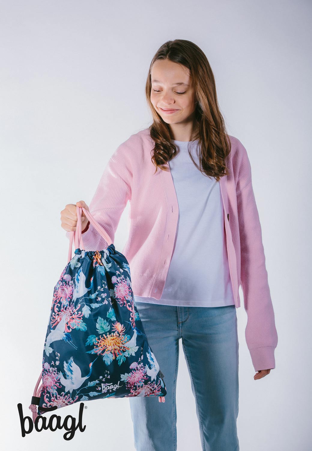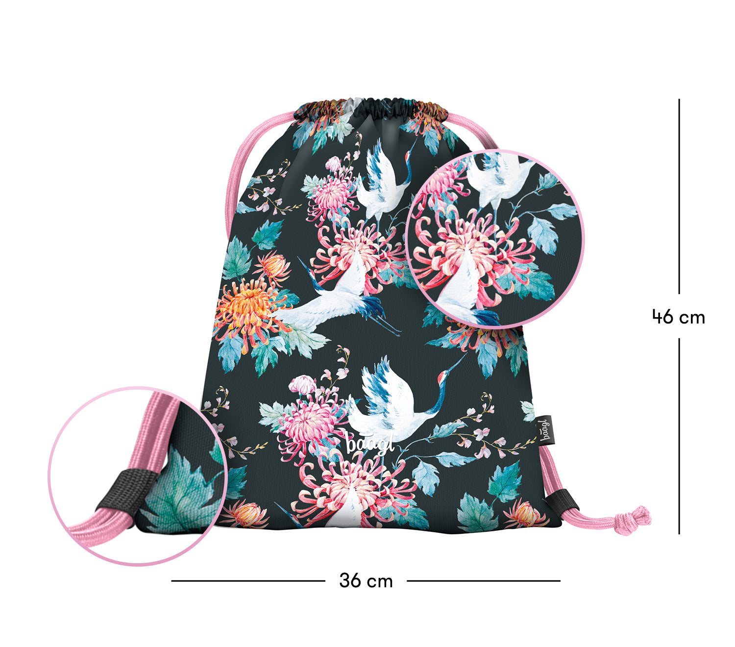 Gymsack, sáček na tělocvik, s pestrobarevným motivem květin a ptáčků.