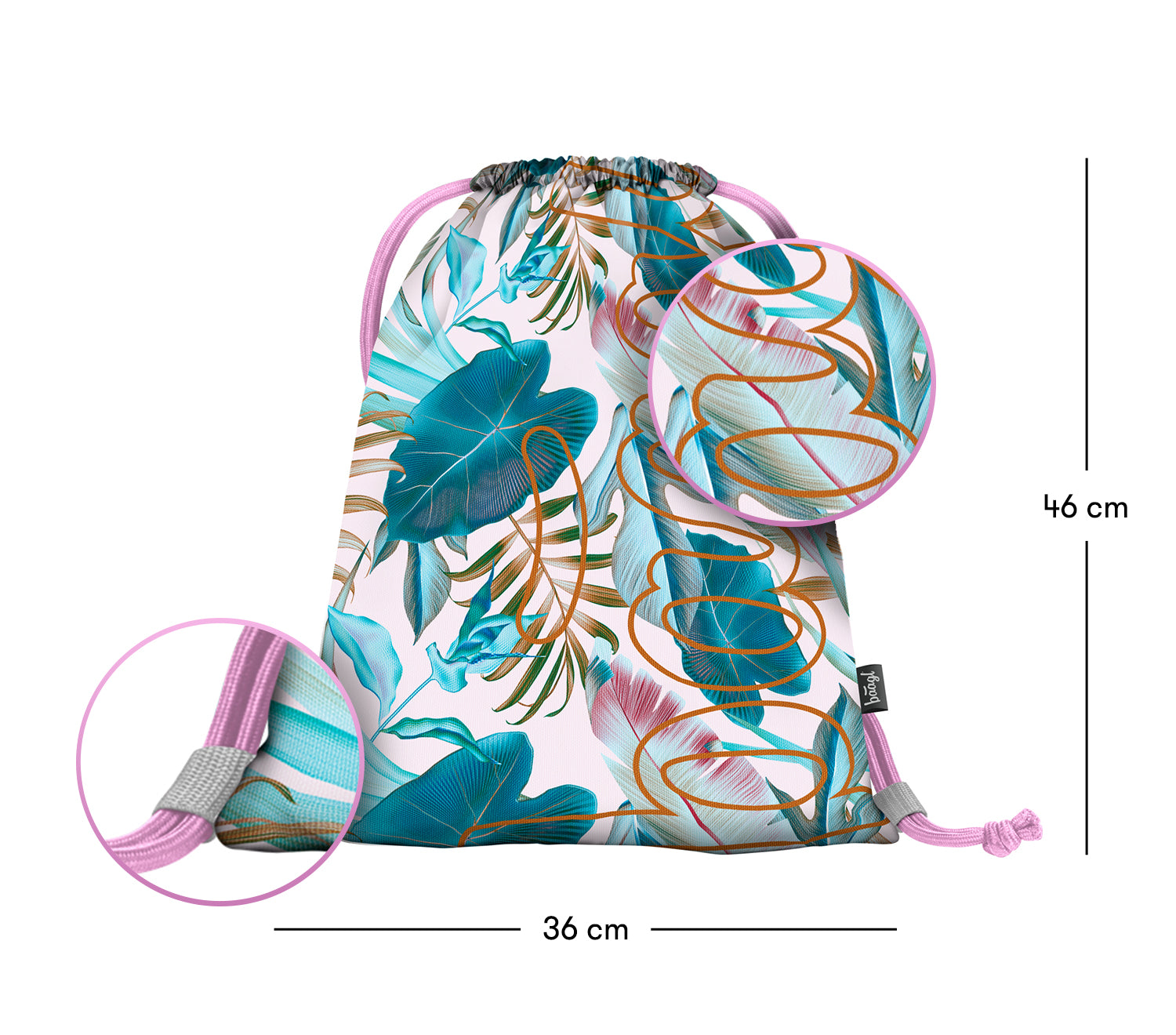 Dívčí sáček na boty nebo tělocvik v trendy designu tropických listů, který ocení mladé slečny.