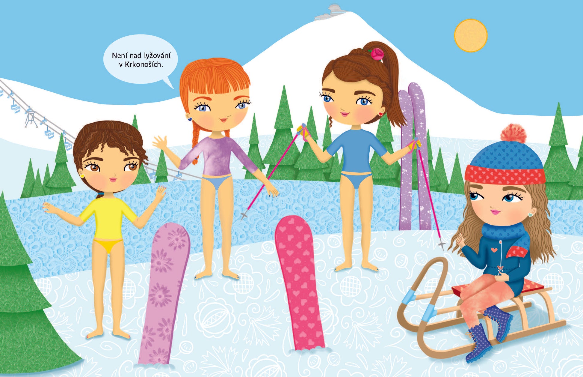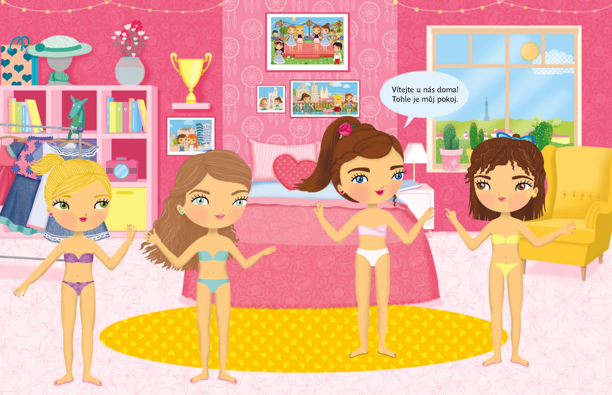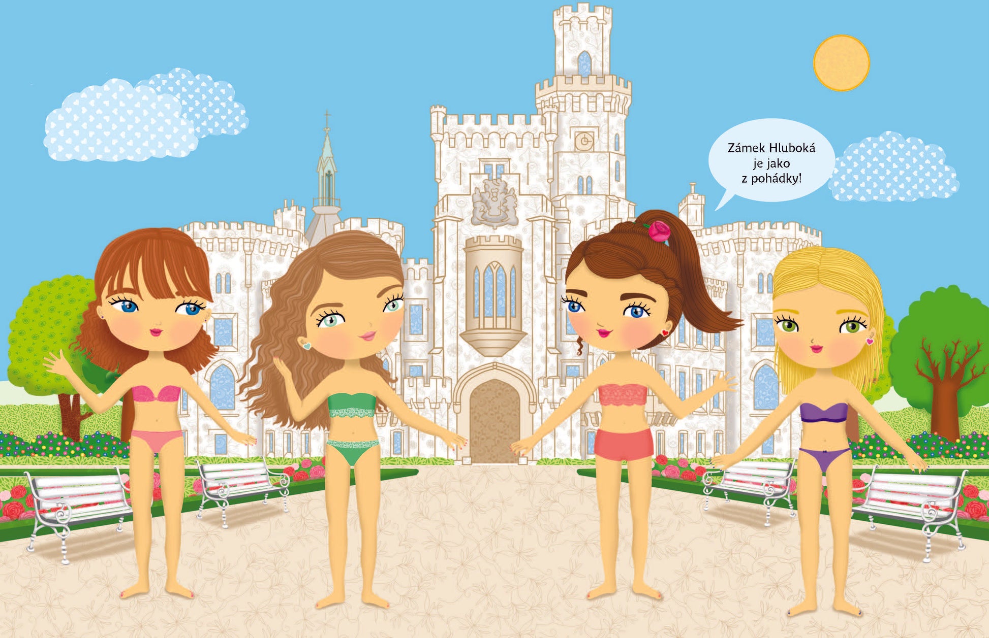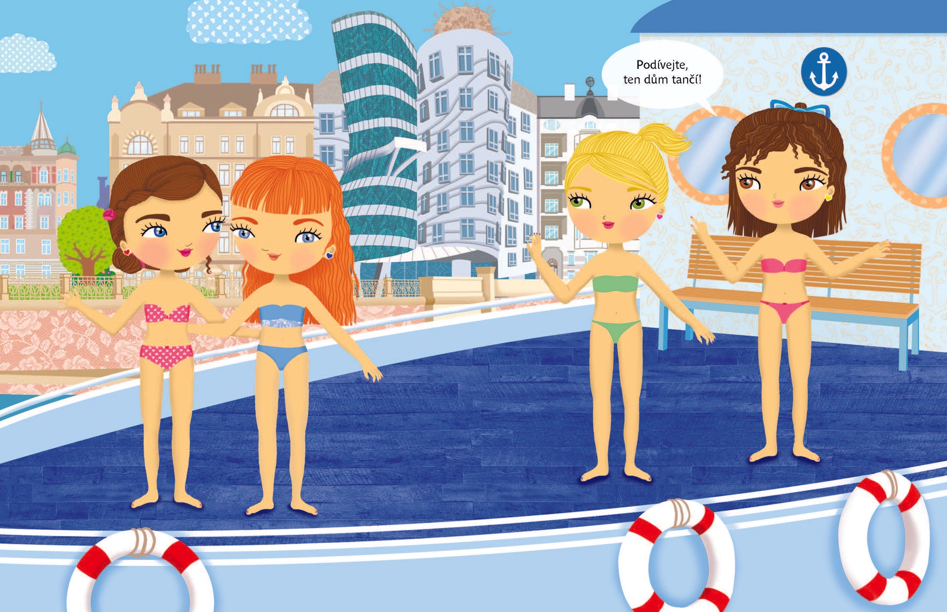 Objevujte českou kulturu s panenkou Eliškou! Anebo byste raději jako průvodkyni po vlasti zvolili Aničku, Adélku, případně Viktorku? Vyberte si panenku podle vlastního vkusu - každá z nich vás vezme na nejznámější místa našeho hlavního města Prahy, navštívíte spolu folklorní vystoupení, ples, podniknete túru, výlet na pohádkový zámek Hluboká, budete kempovat u Máchova jezera a v zimě si zalyžujte v Krkonoších. S více než 300 samolepkami a překrásnými obrázky je objevování jedna radost!