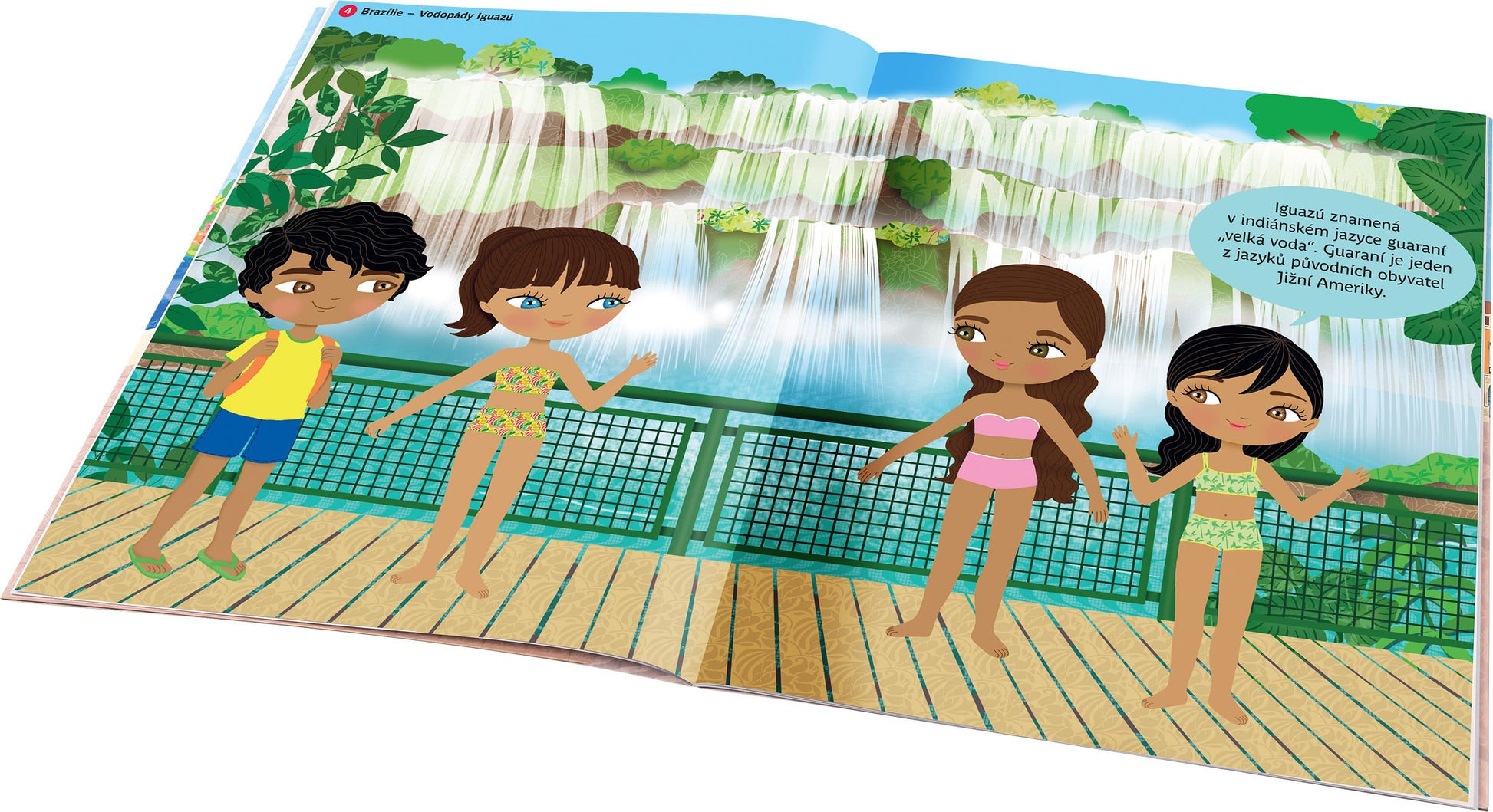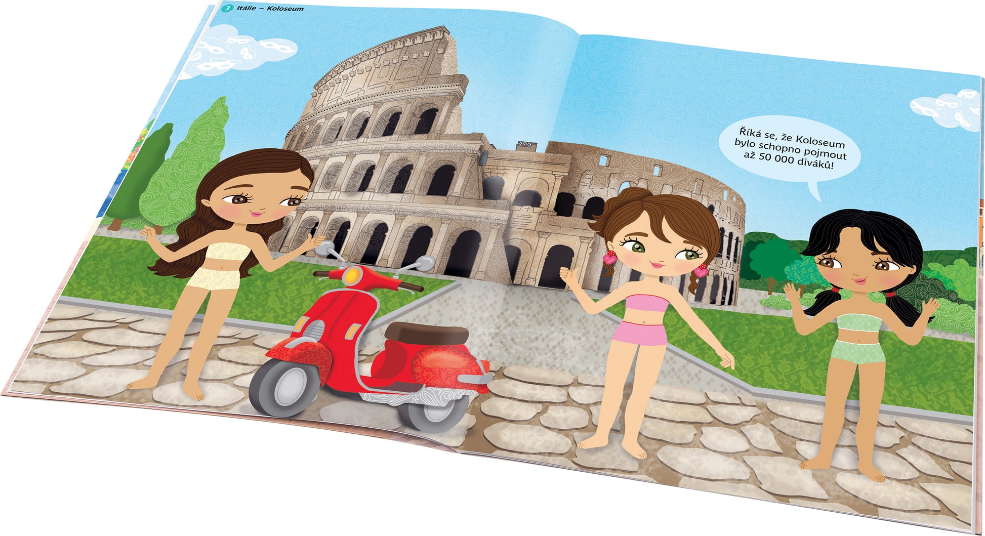 Díky této novince ze série, která patří k našim nejpopulárnějším, poznají malí čtenáři ty nejúžasnější kouty na zemi! S panenkami, jež mohou oblékat do cizokrajných šatů a zdobit je stylovými doplňky, navštíví a na vlastní oči si budou moct prohlédnout dvanáct divů světa. Egyptské pyramidy, brazilské vodopády Iguazú, Velká čínská zeď, nejvyšší africká hora Kilimandžáro nebo Grand Canyon v USA, to jsou jen některé z těch, o nichž se v knížce dozvědí mnoho zajímavého. K dotváření atraktivních dvoustránkových scenerií mají více než 300 úžasných samolepek!