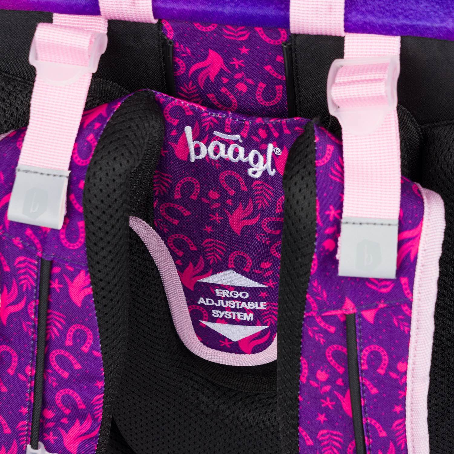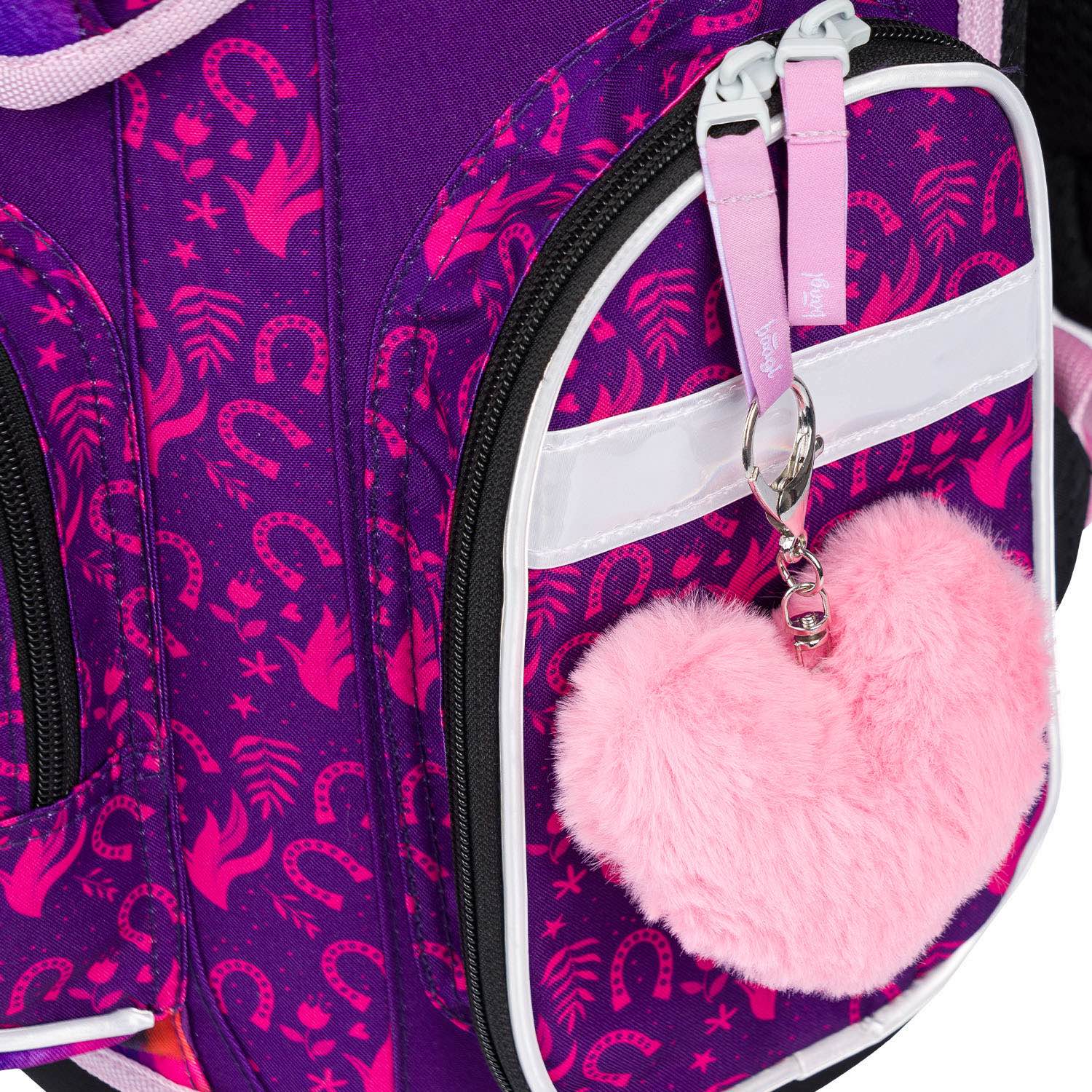 Dívčí fialová aktovka ERGO s motivem koně je vhodná od 1. třídy ZŠ. Unikátní magnetické zapínání Fidlock usnadní prvňáčkům manipulaci.