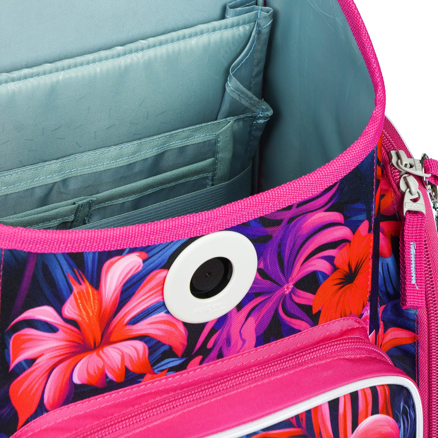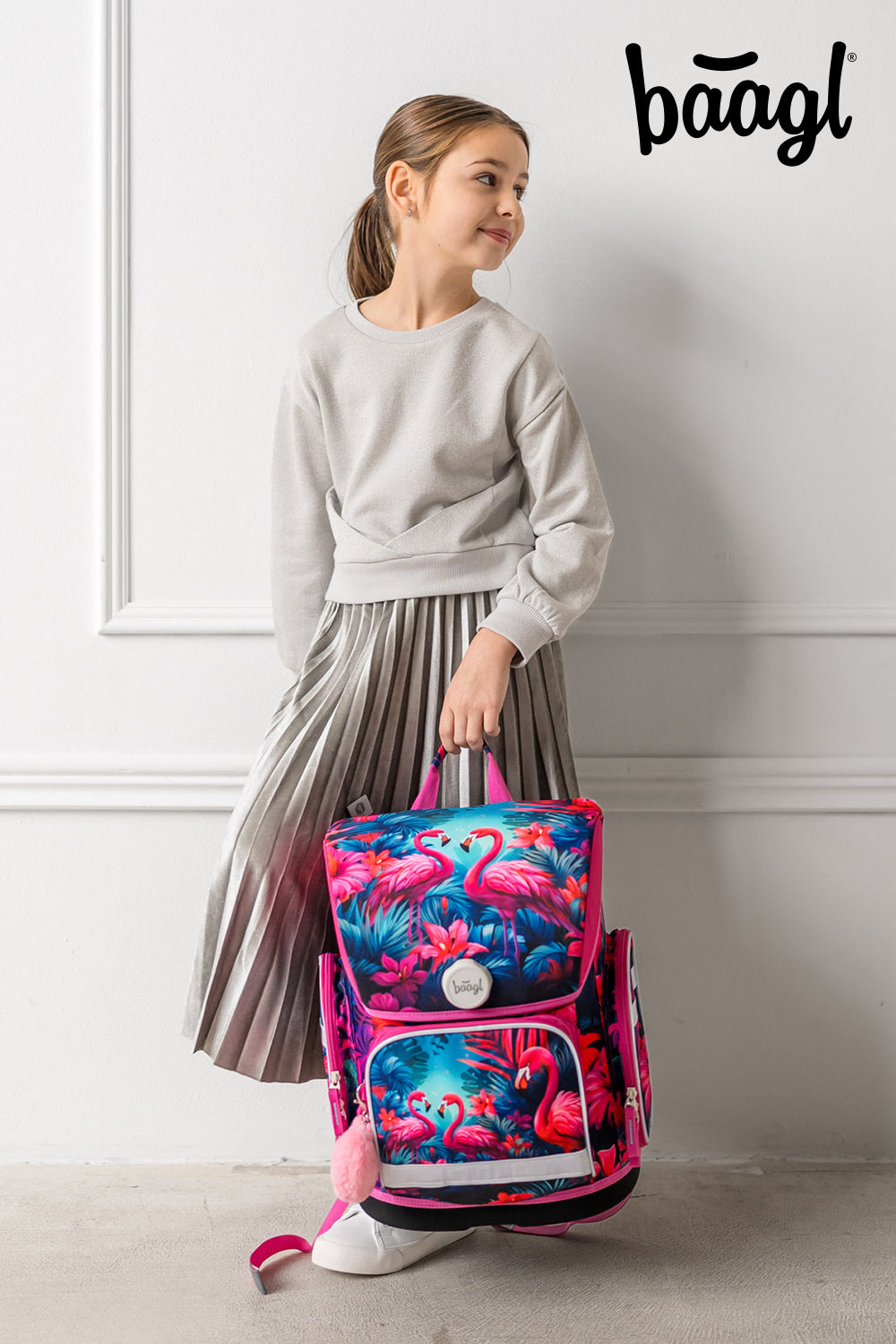 Dívčí aktovka Ergo s romantickým motivem růžových plameňáků rozbuší srdce každé malé školačky. Je vybavena posuvným zádovým systémem, díky kterému ji lze přizpůsobit aktuální výšce dítěte, a unikátní přezkou FIDLOCK pro snadné otevírání a zavírání.