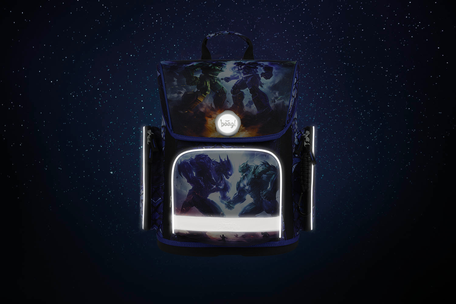 Ergonomická aktovka Ergo Roboti v nadčasovém designu inspirovaném světem počítačových her. Jednoduché otevírání hlavní kapsy pomocí unikátní přezky FIDLOCK umožnuje snadný přístup i těm nejmenším školákům.