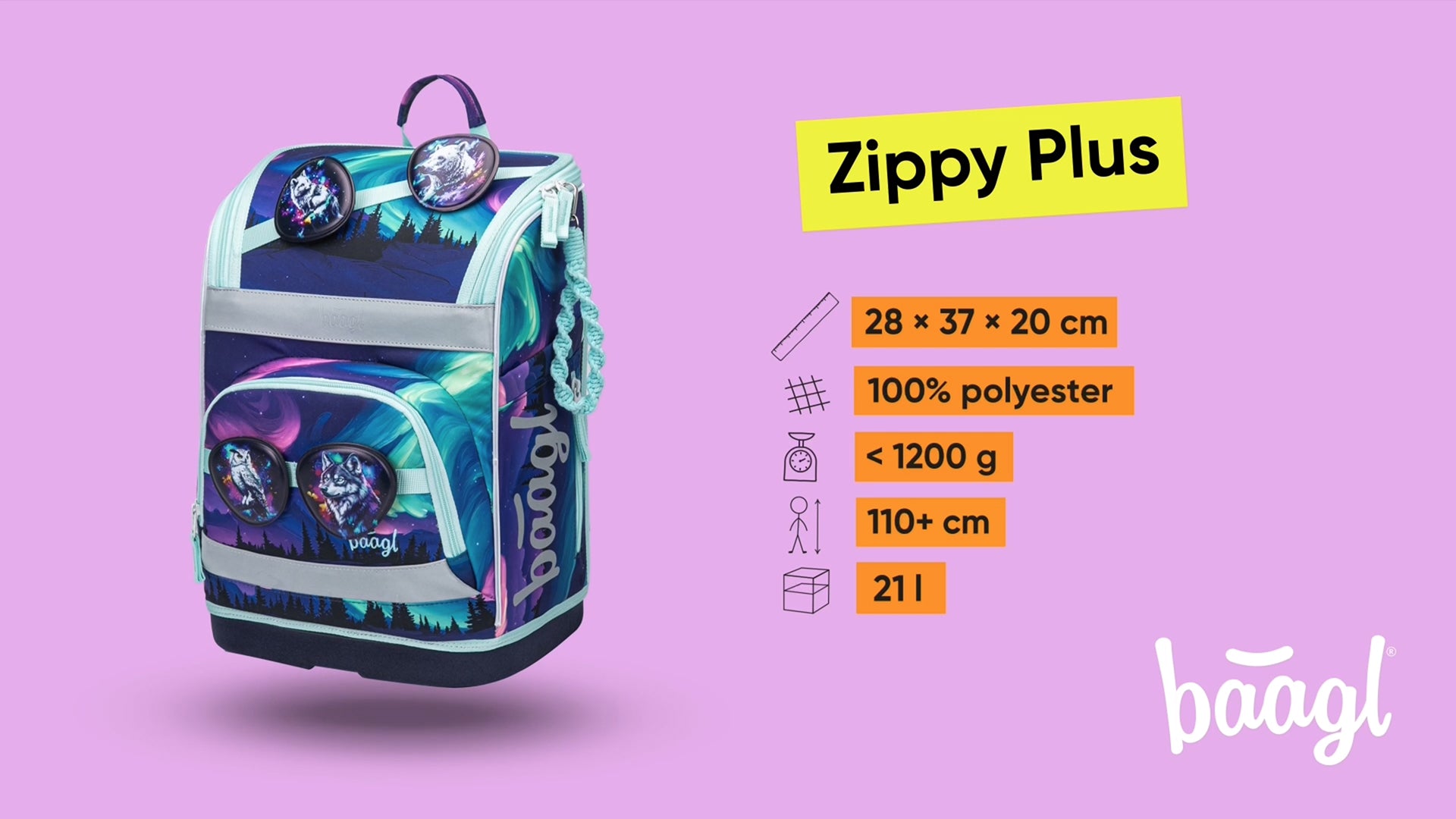 • Aktovka Zippy Plus je vybavena odnímatelným bederním pásem, přehledným vnitřním organizérem a speciální termokapsou na svačinu.