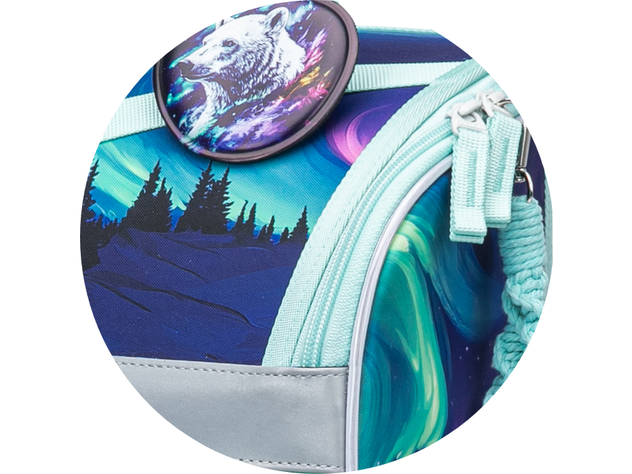 • Jedinečný systém vyměnitelných odznáčků umožňuje přizpůsobit vzhled aktovky podle nálady a zájmů.