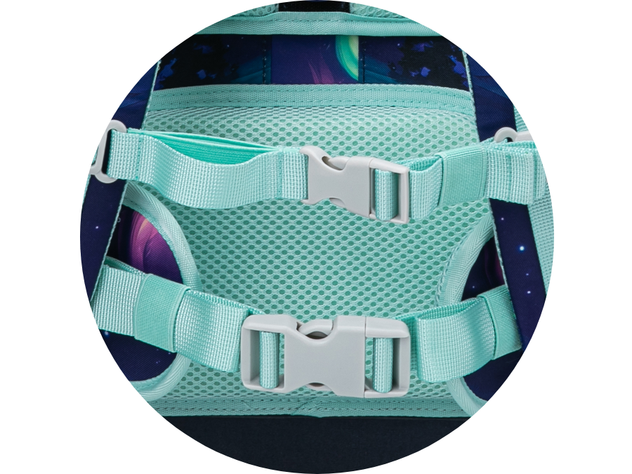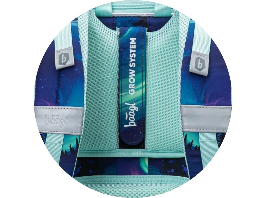 • Posuvný zádový systém umožňuje nastavení aktovky na tři různé velikosti, díky čemuž taška roste spolu s dítětem.