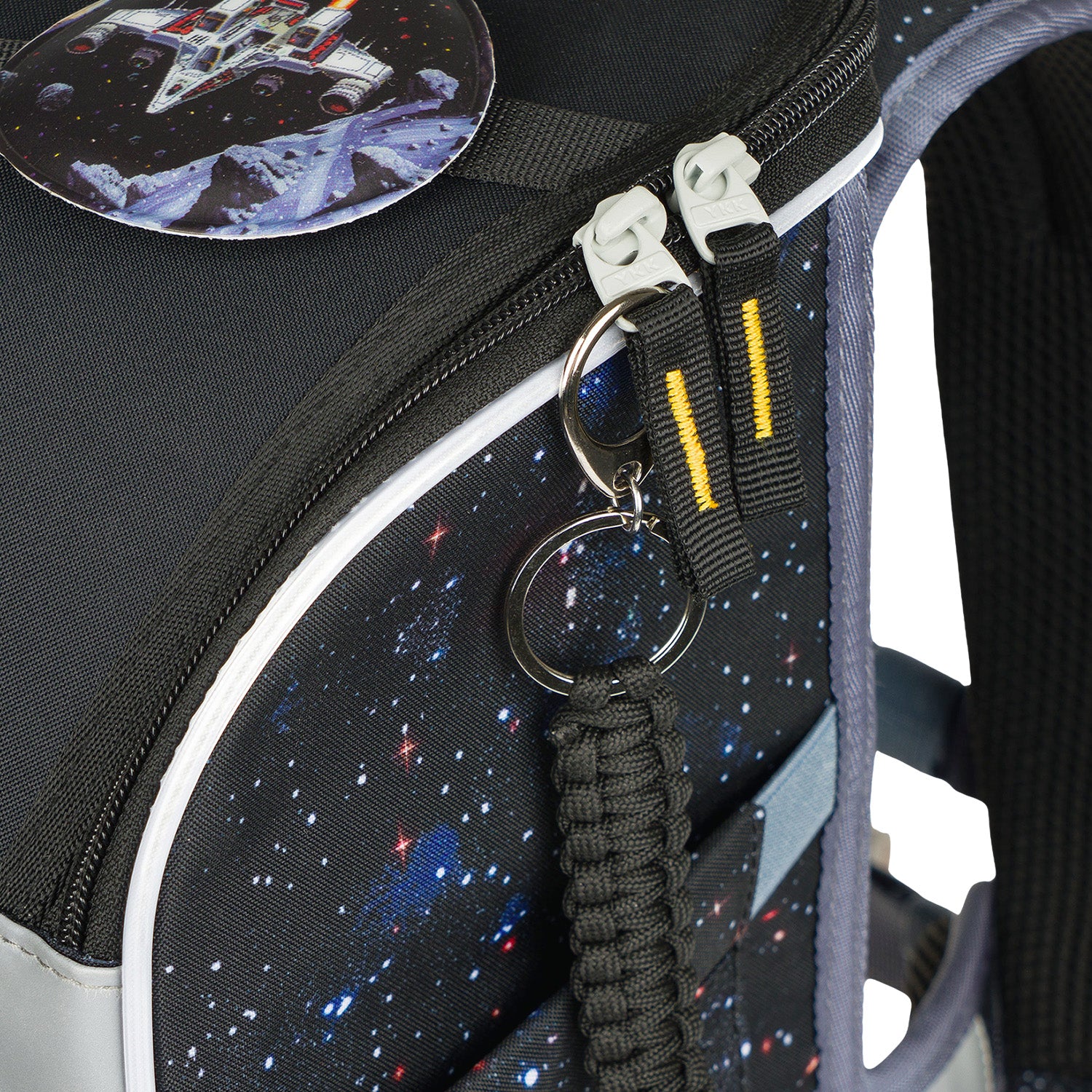 Ergonomická školní aktovka Zippy Plus Pixel Space s vesmírným motivem a odnímatelnými odznáčky, které umožňují měnit vzhled aktovky podle nálady.