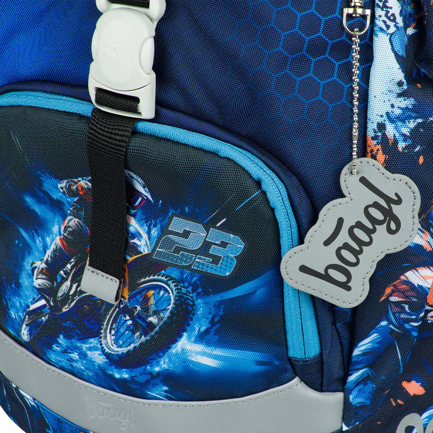 Chlapecký batoh s motivem motorky je vhodný již pro děti od první třídy ZŠ. Má minimální hmotnost a díky intuitivnímu zapínání přední kapsy je zároveň neobyčejně praktický. Samozřejmostí je dostatek reflexních prvků, které zajišťují bezpečnost.
