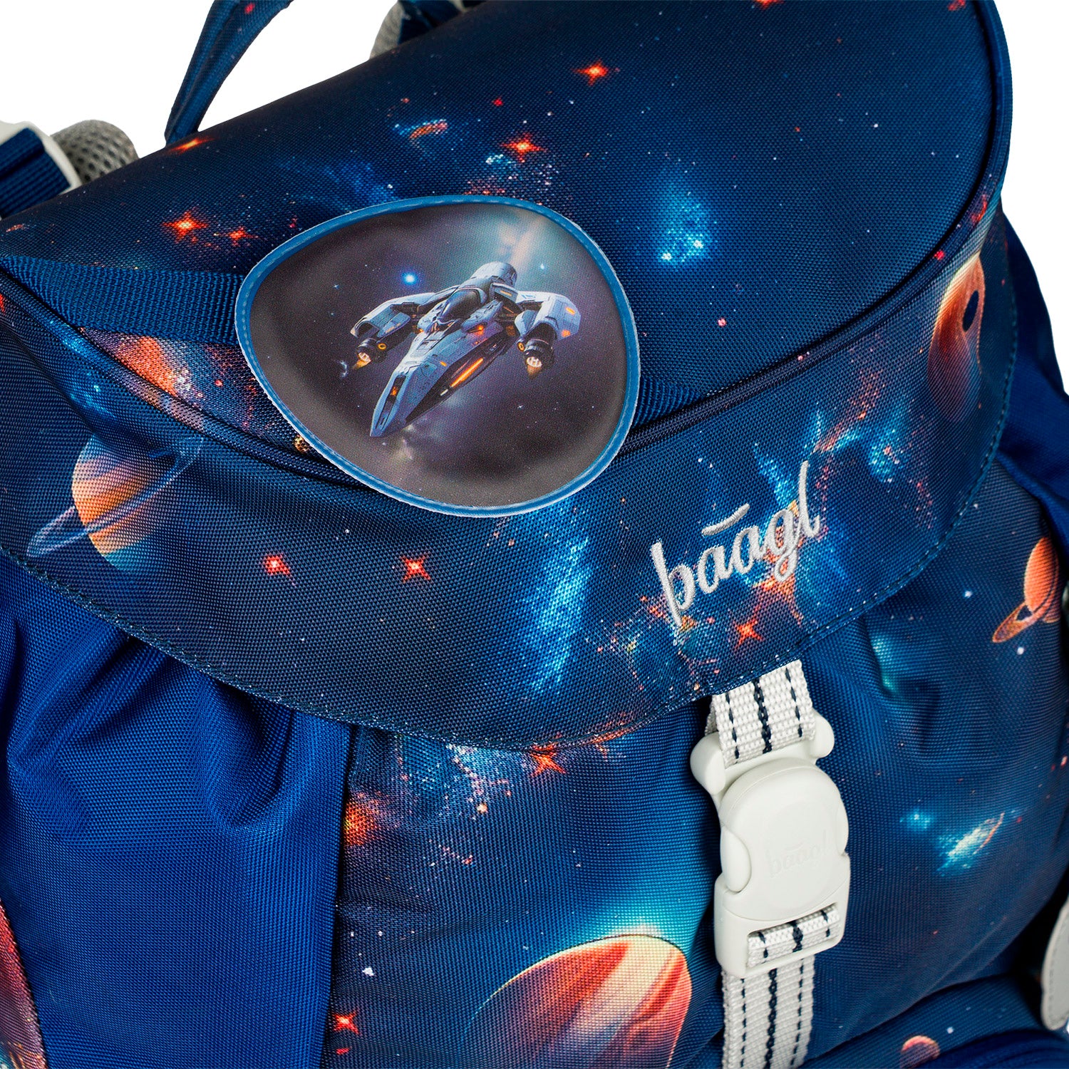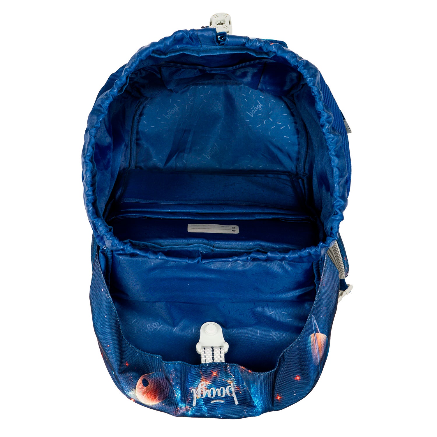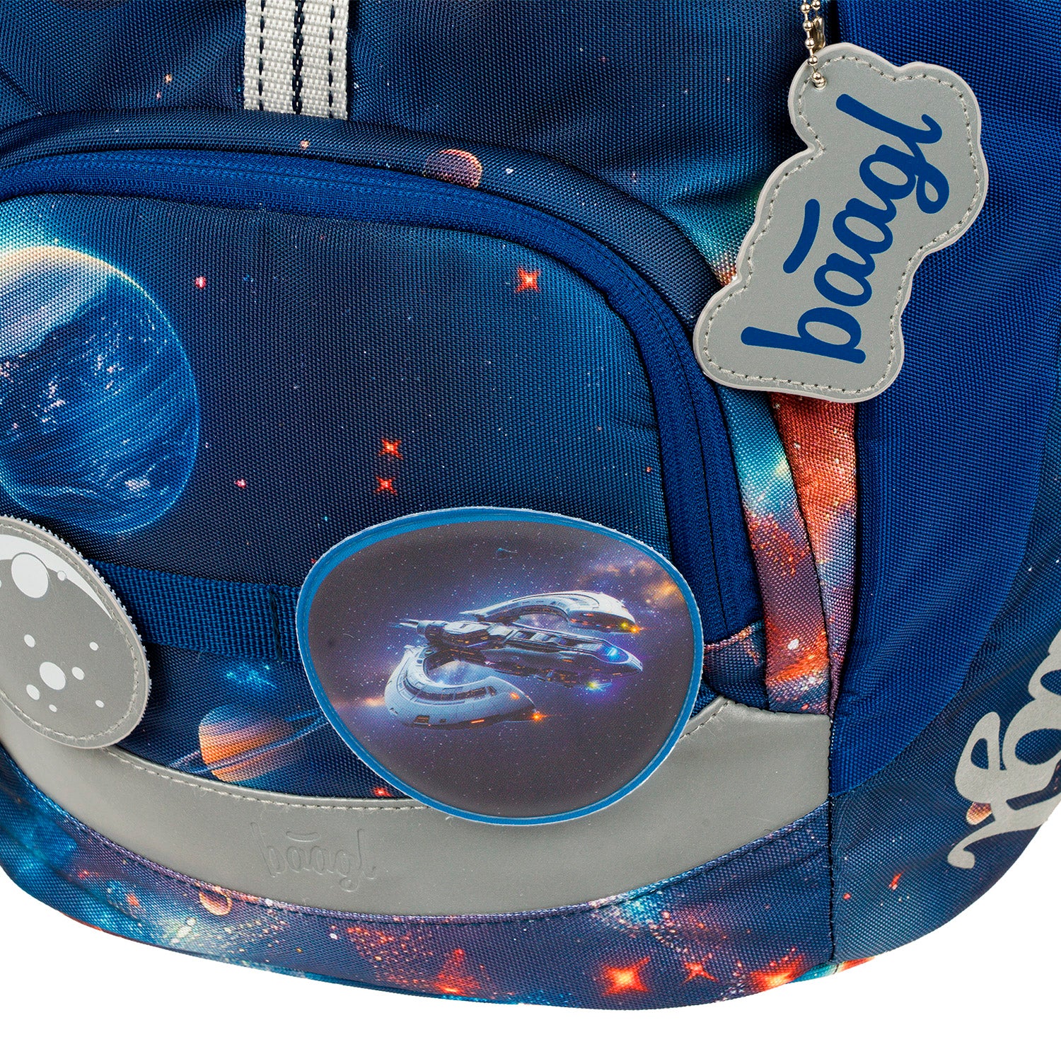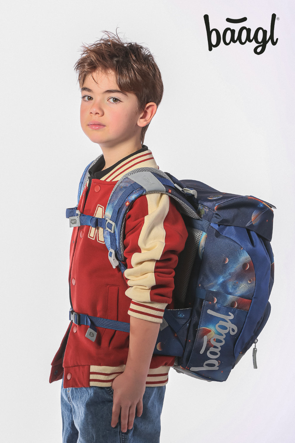 Kompaktní školní batoh Airy s odnímatelnými odznáčky a vesmírným motivem je vhodný pro děti již od 1. třídy ZŠ. Díky ultralehké konstrukci a „nadpozemské“ hmotnosti pouhých 750 g se váš školák bude cítit jako ve stavu beztíže.