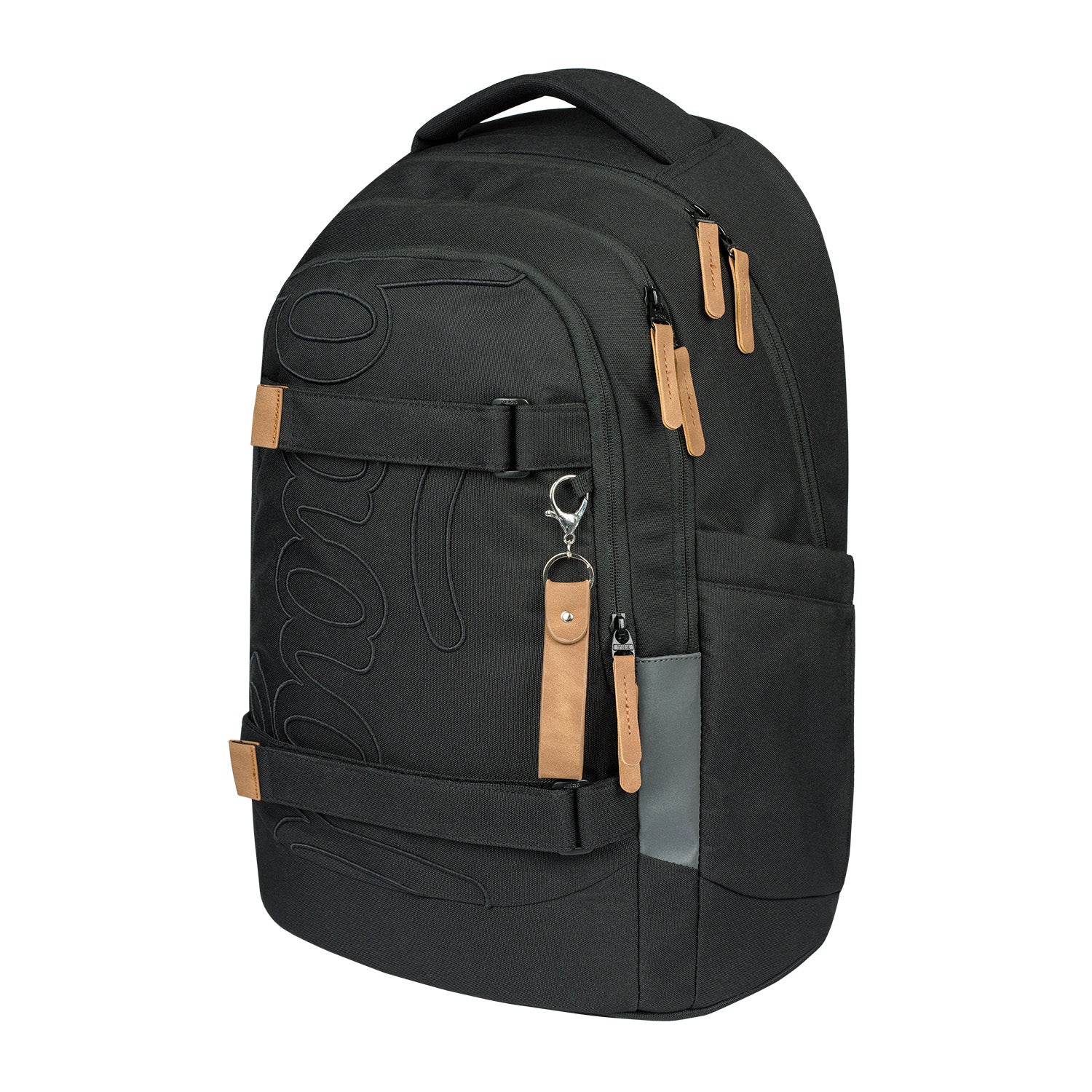 Stylový batoh Skate Max Darkness s přívěskem a designovými popruhy pro uchycení skateboardu je vhodný pro žáky od 3. třídy ZŠ.