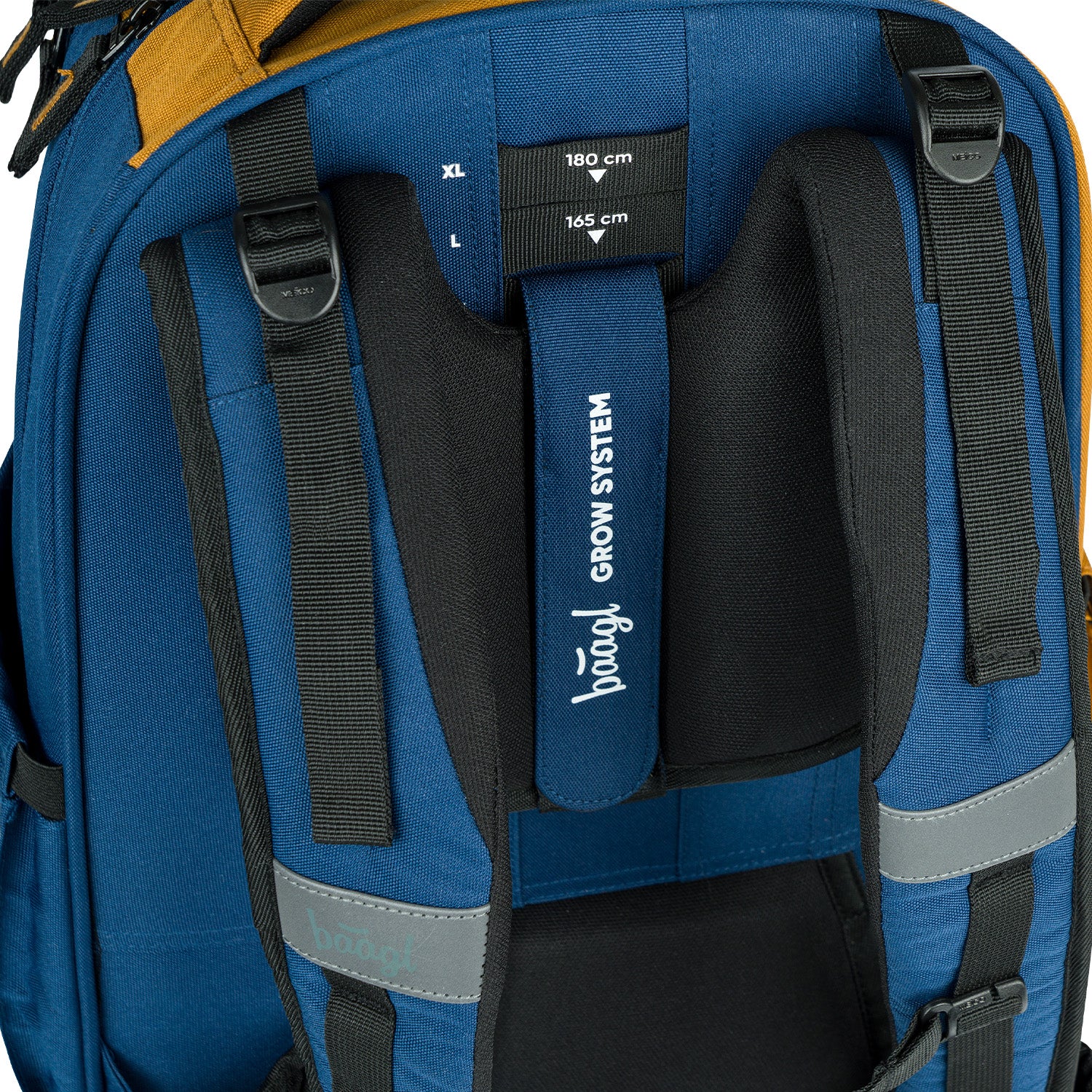Designový školní batoh Skate Max Duo s logem BAAGL a popruhy na uchycení skateboardu disponuje odnímatelným bederním pásem a díky posuvnému zádovému systému jej lze nastavit na čtyři různé velikosti.