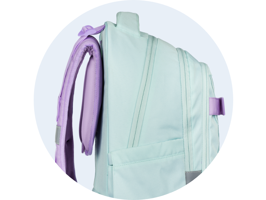 • Batoh z recyklovaného, voděodolného materiálu je opatřen řadou reflexních prvků pro maximální bezpečnost dítěte i za snížené viditelnosti.