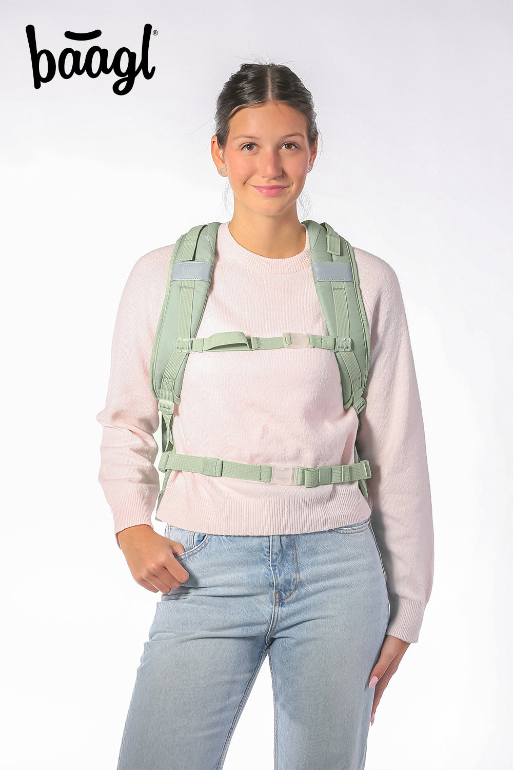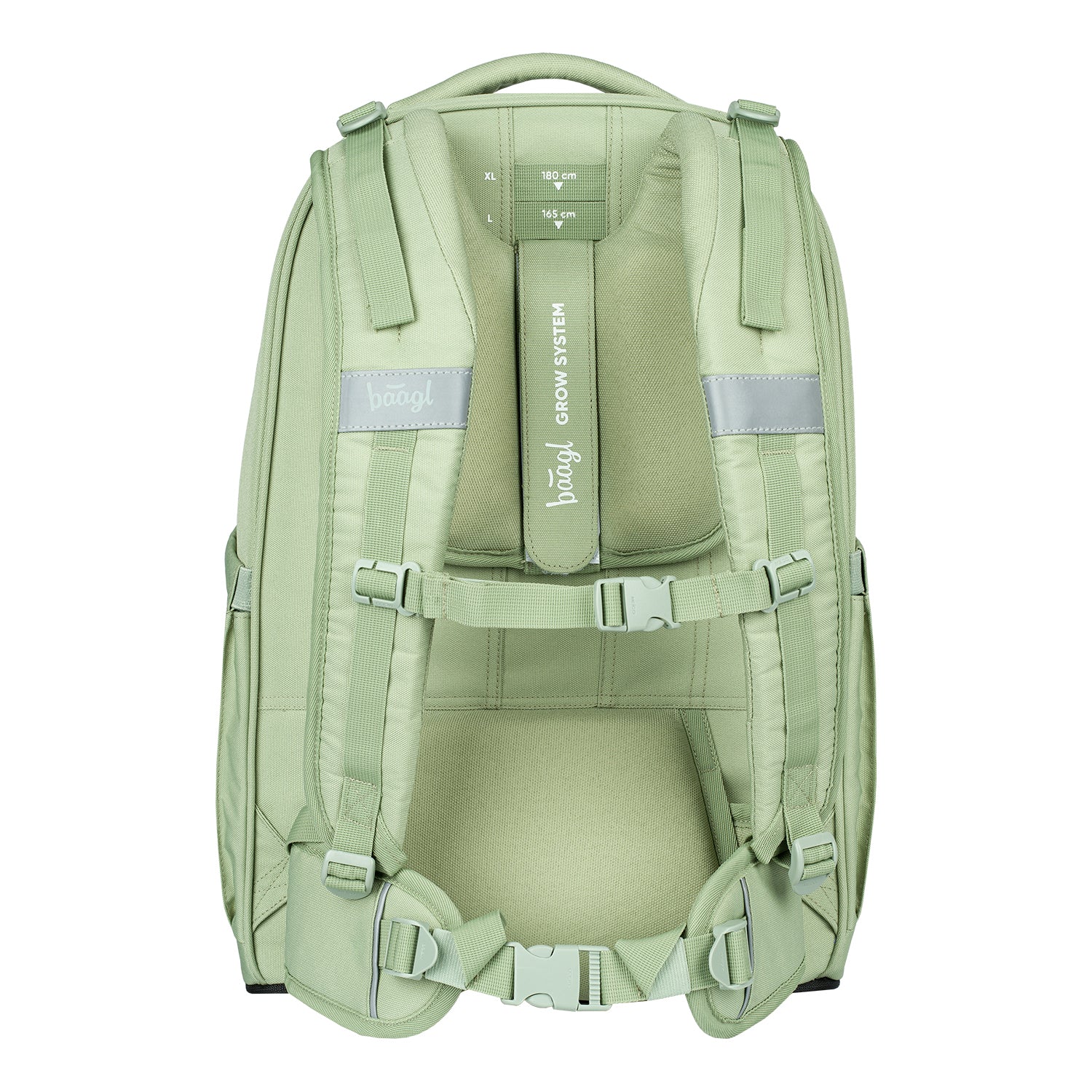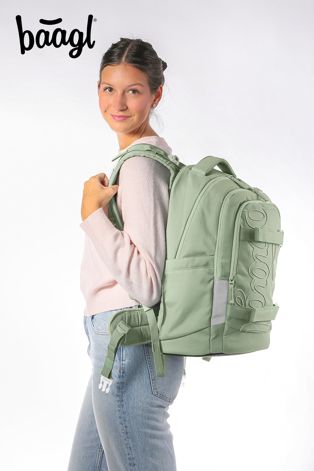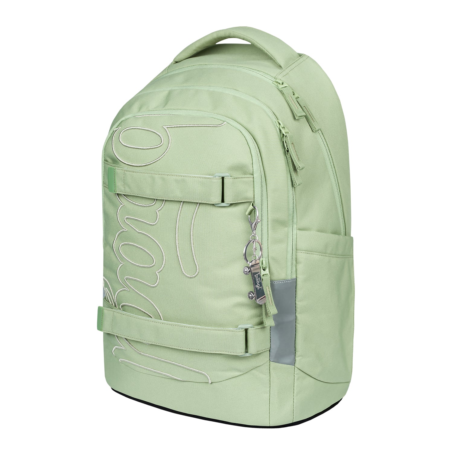 Designový batoh Skate Max Mentol s minimalistickým logem BAAGL, popruhy na uchycení skateboardu a speciální polstrovanou kapsou na notebook lze díky nastavitelnému zádovému systému upravit na čtyři různé velikosti.