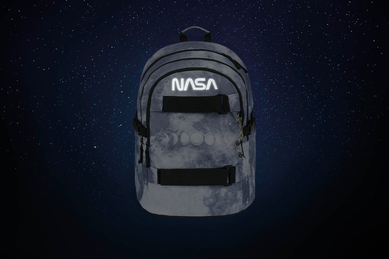 Vesmírně zajímavý školní batoh NASA s popruhem na uchycení skejtu vás bude bavit. Je vyrobený z recyklovaného materiálu a jeho minimalistický design se zkrátka neomrzí.