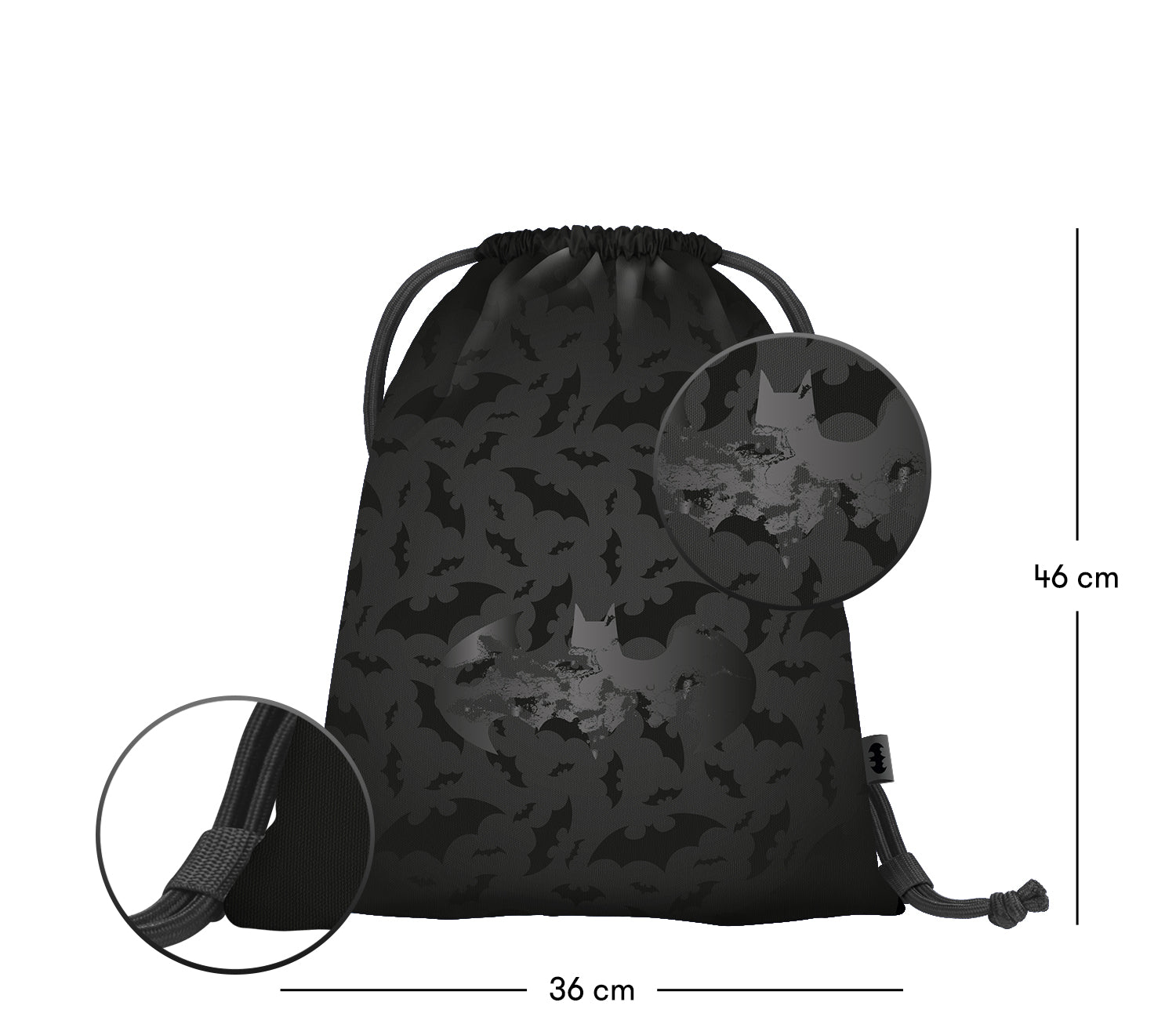 Černý sáček s výrazným motivem komiksového hrdiny Batmana je nejen stylový, ale i praktický. Hodí se na přezůvky, sport i další volnočasové aktivity.