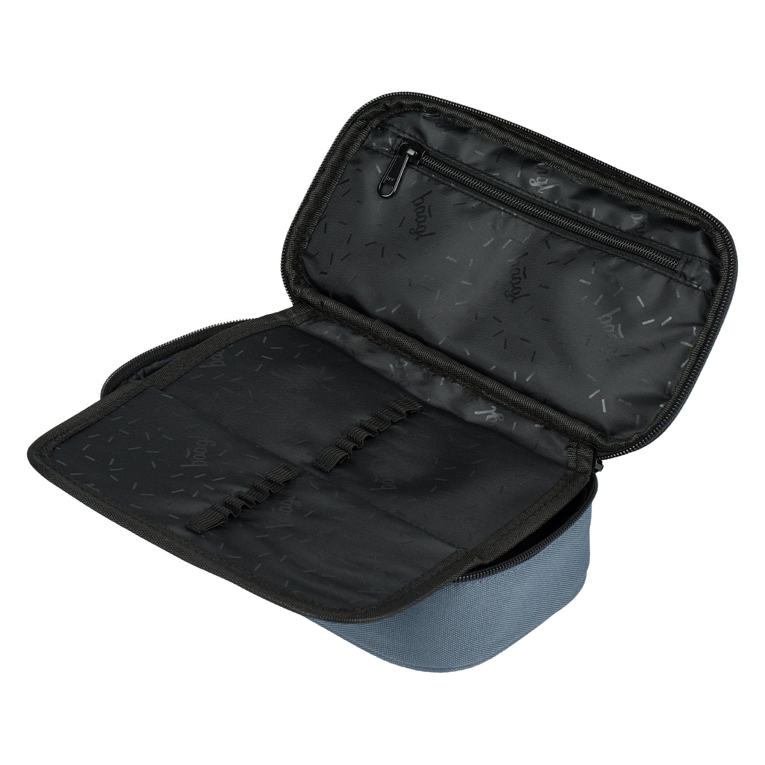 • Kompaktní penál na zip s prostornou hlavní komorou a dvojitou výklopnou chlopní nabízí dostatek prostoru pro psací potřeby i drobnosti.