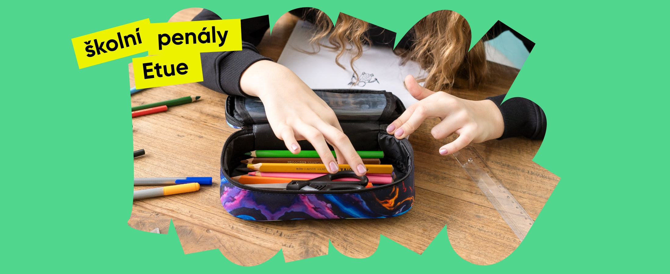 • Pevný školní penál s výklopnou vnitřní přepážkou