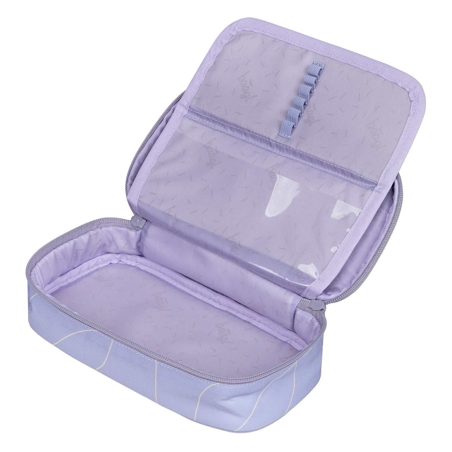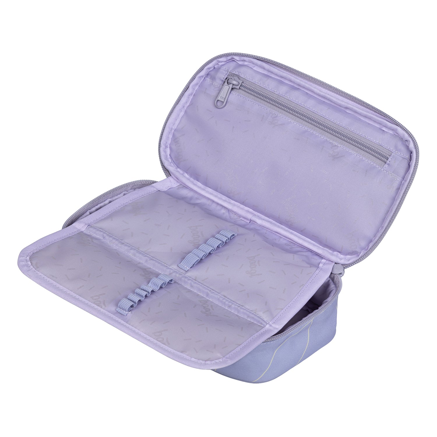 Světle fialový školní penál s logem BAAGL poskytuje dostatek prostoru pro uložení psacích potřeb. Díky výklopné chlopni a prostorné hlavní komoře se do něj vše pohodlně vejde a značkové zipy zajišťují snadné a spolehlivé používání.