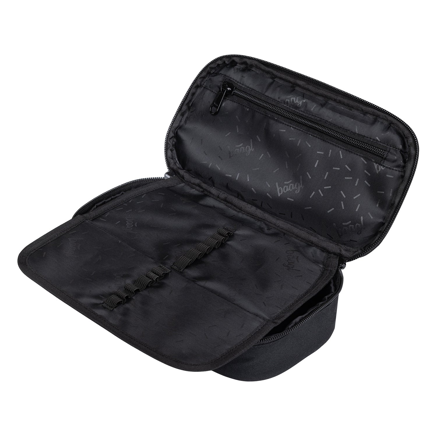 • Kompaktní penál na zip s prostornou hlavní komorou a dvojitou výklopnou chlopní nabízí dostatek prostoru pro psací potřeby i drobnosti.